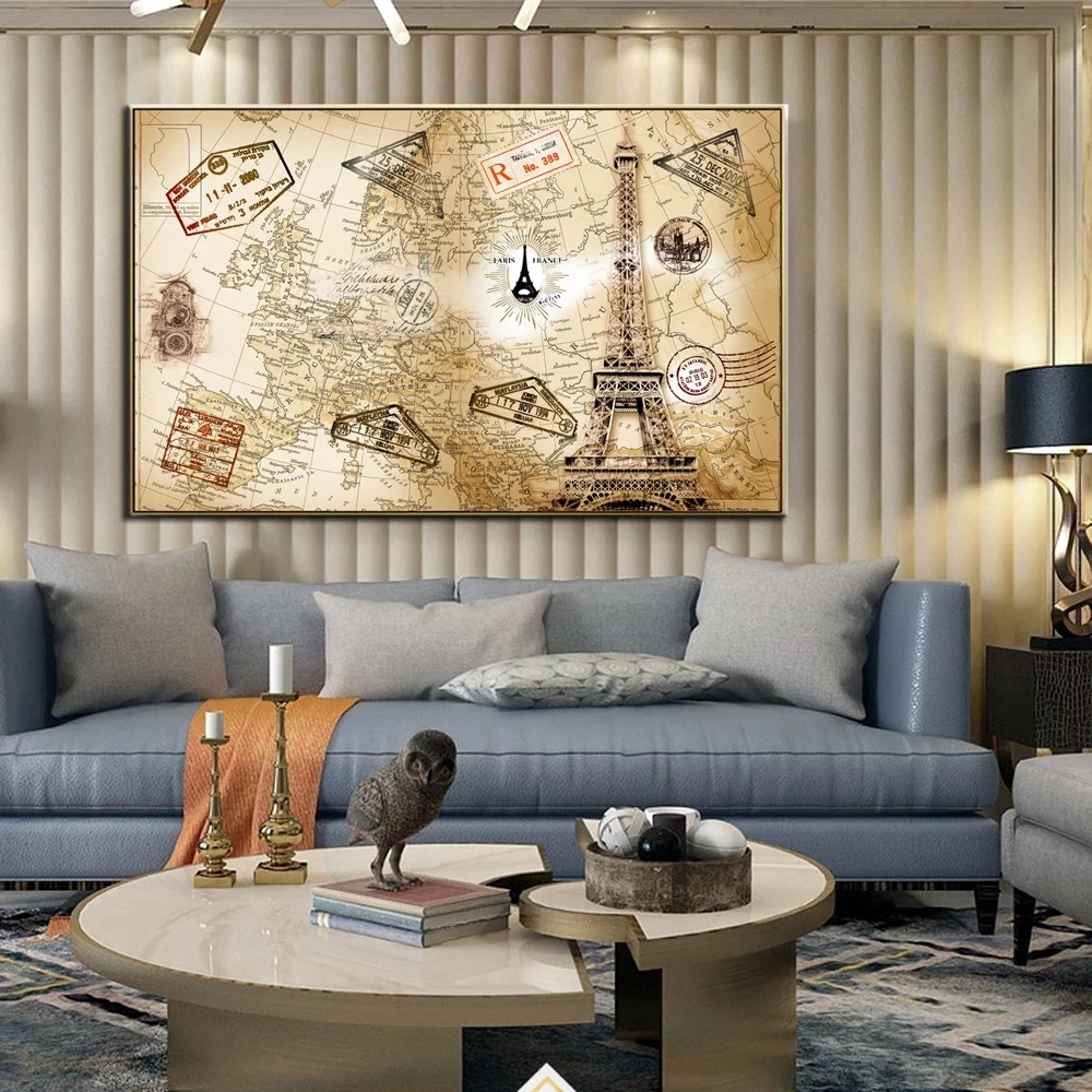 Абстрактный золотой мир плакат-карта печать на холсте большая Ретро...