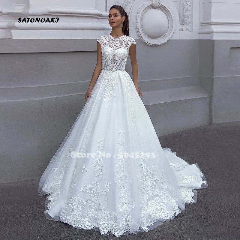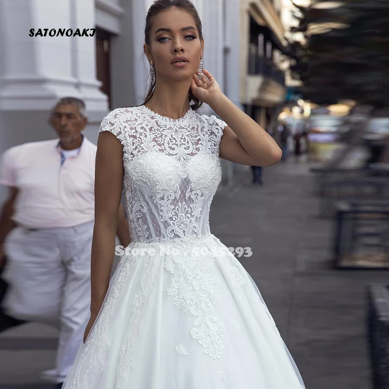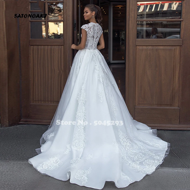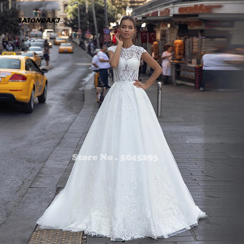 Простые Свадебные платья 2021 Кружевная аппликация Глубокий вырез б...