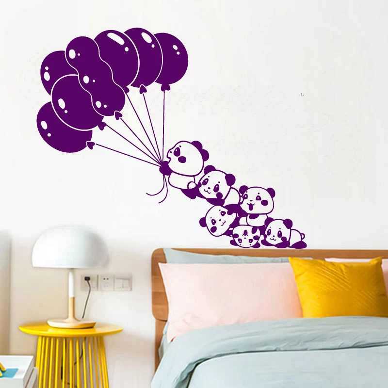 Забавная панда, наклейка на стену, воздушный шар, Виниловая наклейка, детская спальня, любовь, сердце, украшение, милые Мультяшные животные, плакаты, роспись для детской комнаты