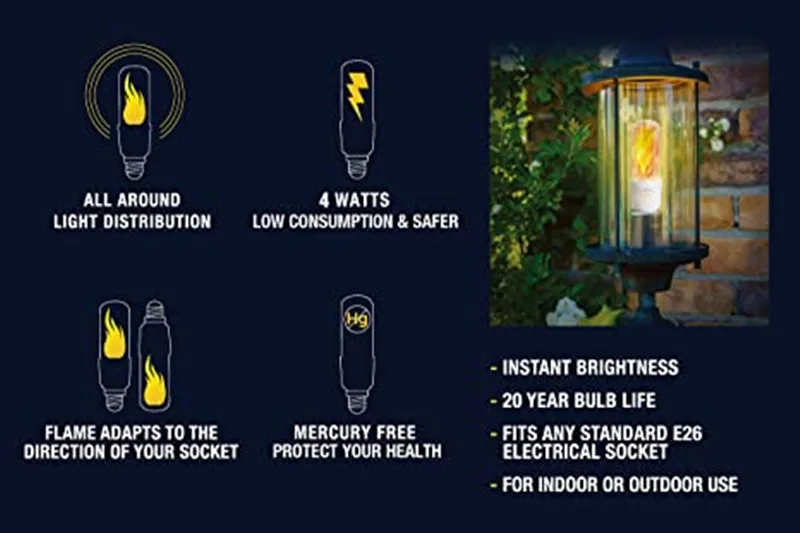 Искусственный яркий огонь, динамичное движение пламени, имитация природы огня мерцание пламени, но Беспламенное, безопасный и энергосберегающий светодиодный светильник источник, замена традиционального газового Фонари, например, Модифицированная масляная лампа, ураган лампы