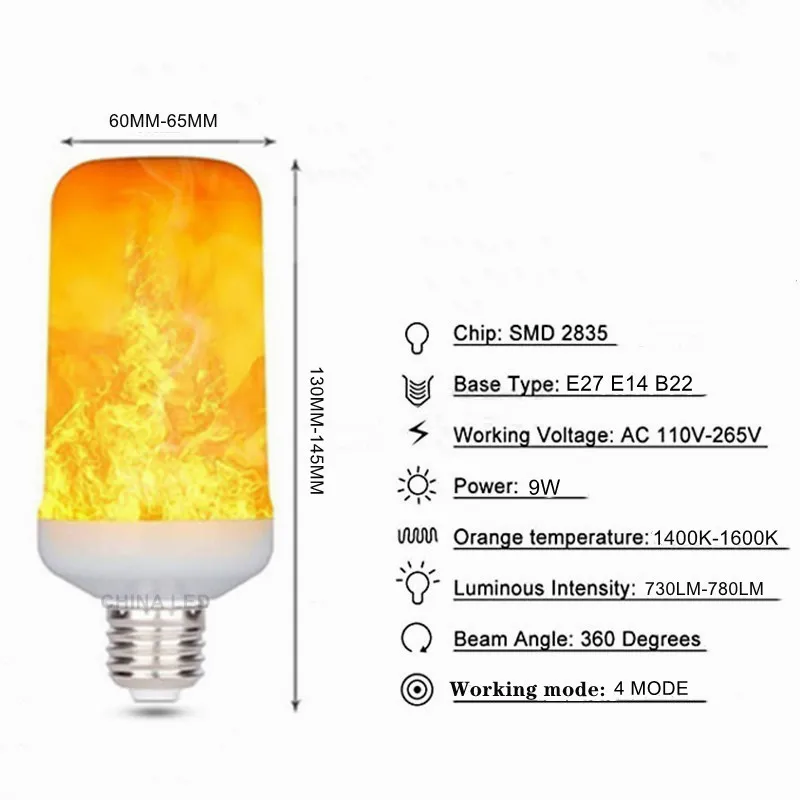 Тип товара: светодиодный светильник с эффектом пламени