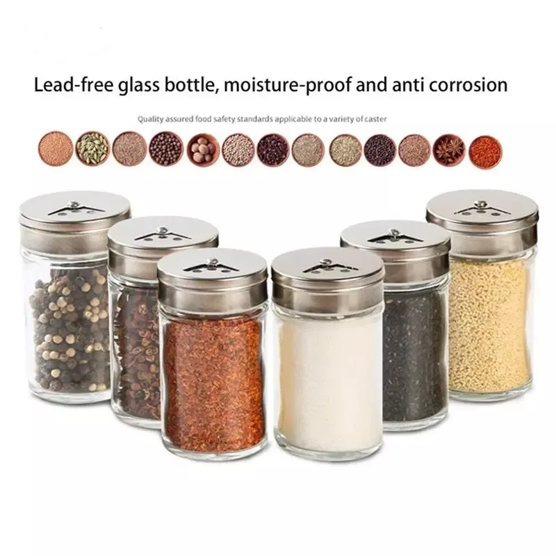 Комплект из 2 предметов Нержавеющаясталь Стекло контейнер для приправы для баночек со Стекло Кухня поставки и материалы солонка Регулировка вращения