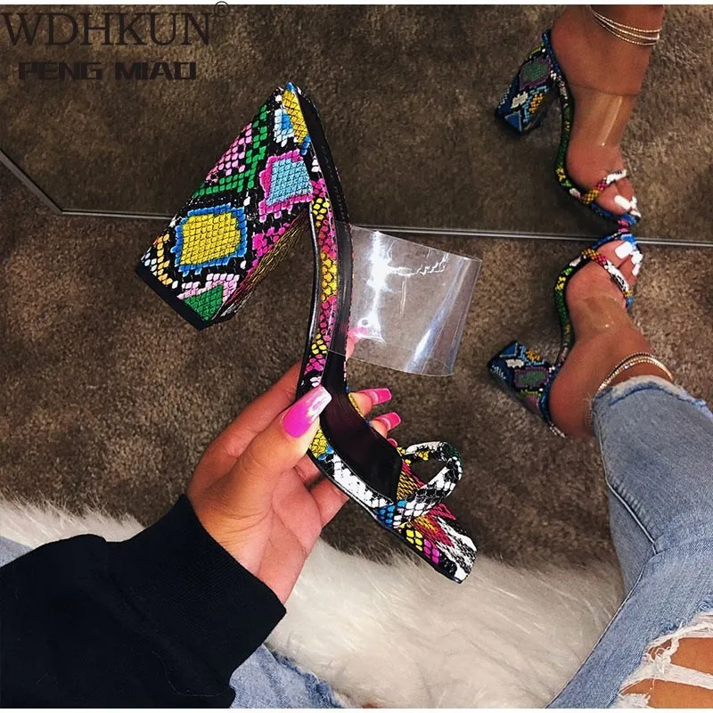 Женские прозрачные сандалии из ПВХ, туфли-лодочки на высоком каблуке, тапочки карамельных цветов с открытым носком, на толстом каблуке, модная женская летняя обувь, 2021