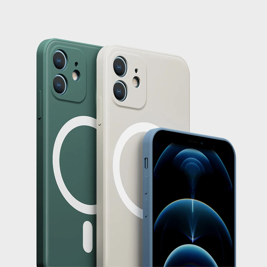 Жидкий силиконовый чехол для iPhone 12, квадратный Беспроводной магнитный чехол Magsafing для iPhone 11 Pro Max 12 Mini X Xs Xr 7 8 Plus