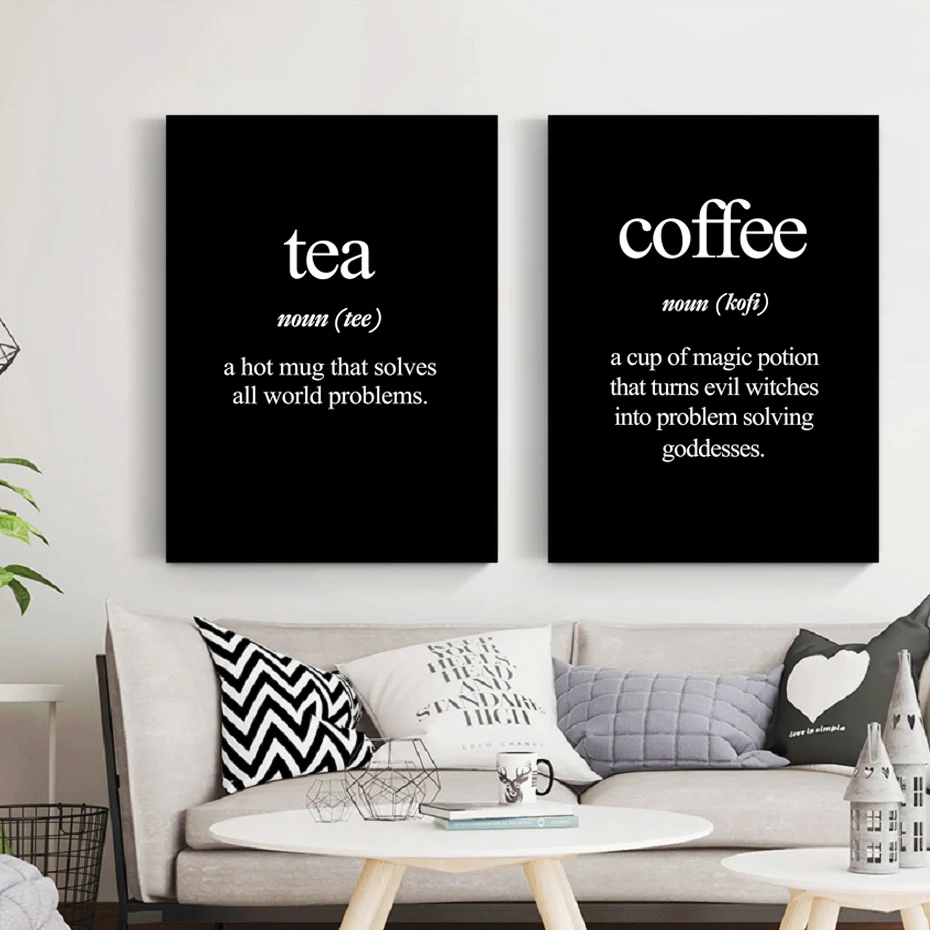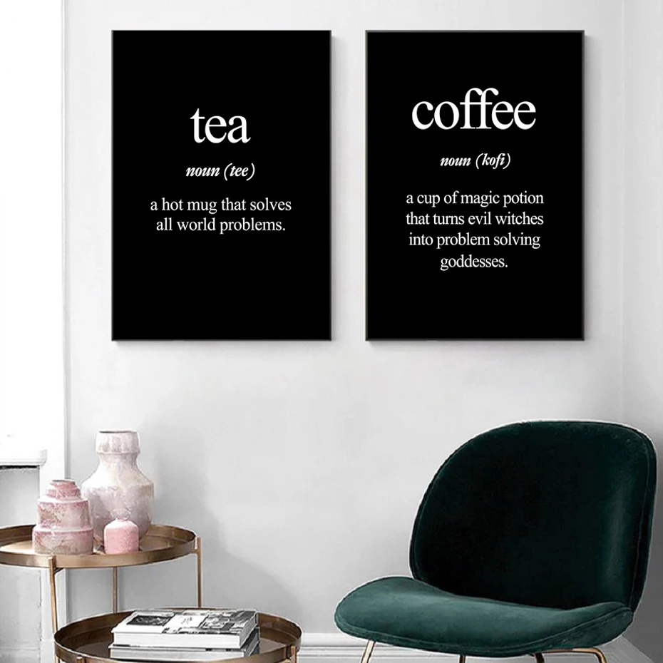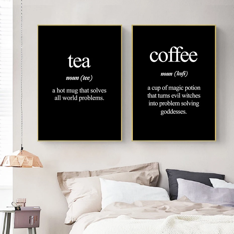 Черно-белый минимализм Современный текст Кофе Чай плакат печать настенное искусство домашнее украшение для стен
