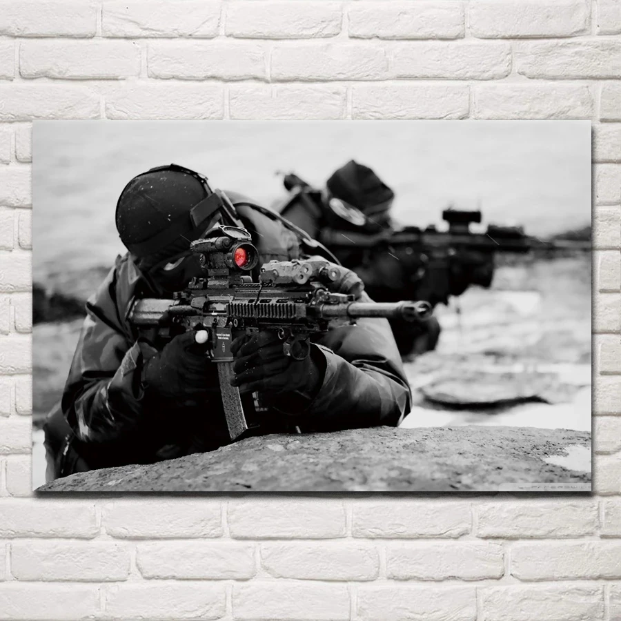 Прицеливаемая солдатская винтовка, черно-белая армейская искусствен...