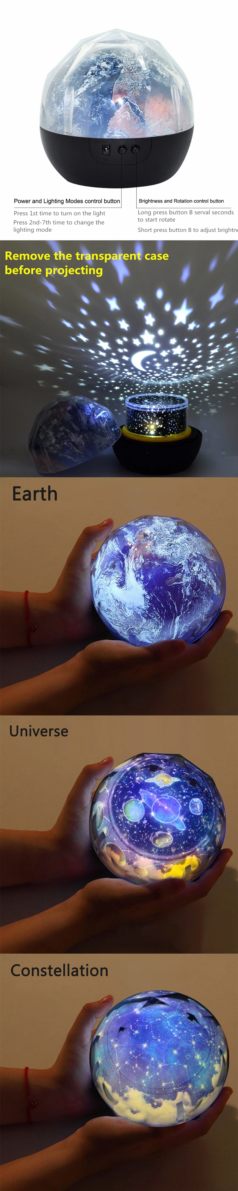 Приглушаемый светодиодный ночсветильник с вращением на 360 градусов, проектор звездного неба, планеты, украшение для детской спальни