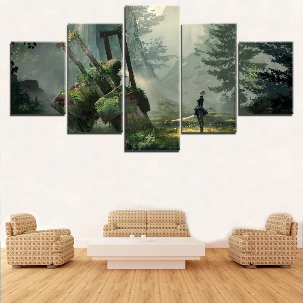 Модульные холщовые постеры из 5 панелей с изображением игр NieR Automata 2B, настенные художественные картины аксессуары для картин, домашний декор, украшение для гостиной icon star icon star icon star icon star icon star
