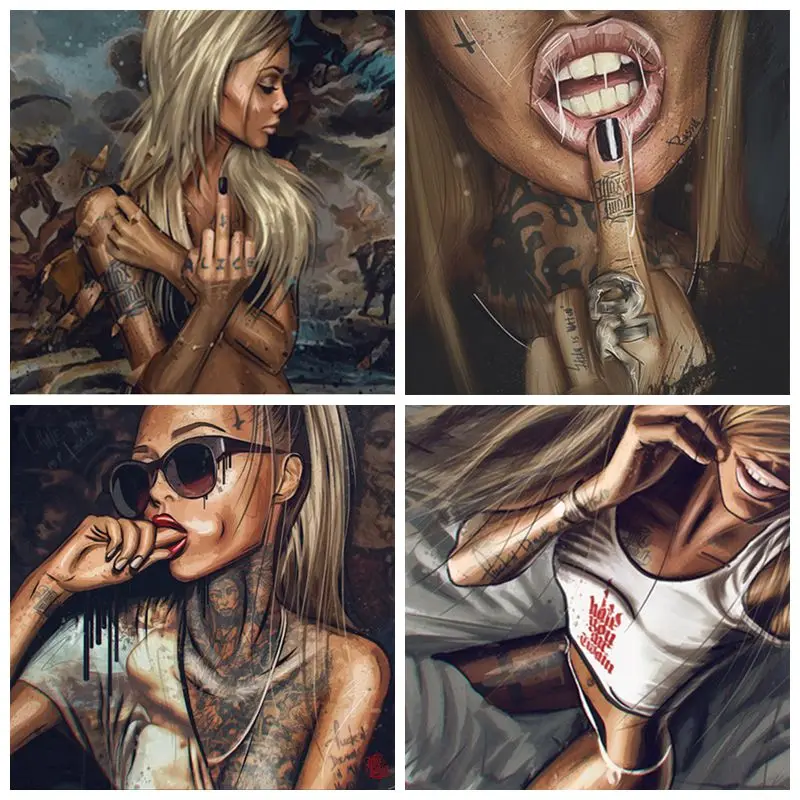 5D алмазная живопись сделай сам, тату сексуальной девушки, граффити, полная вышивка, вышивка крестиком, мозаика, ремесло, домашний декор, рождественский подарок
