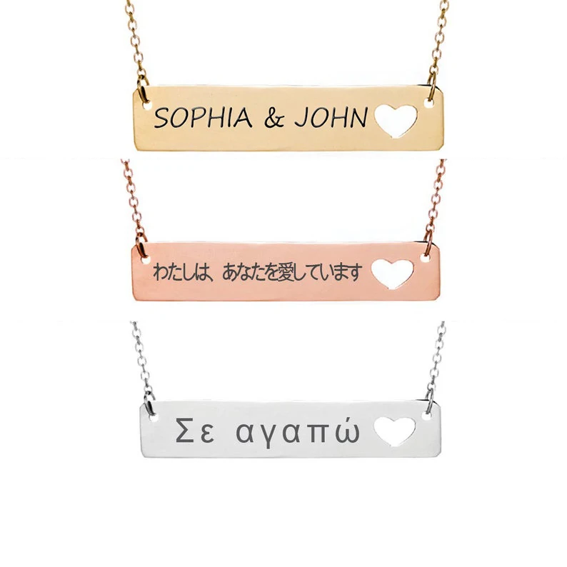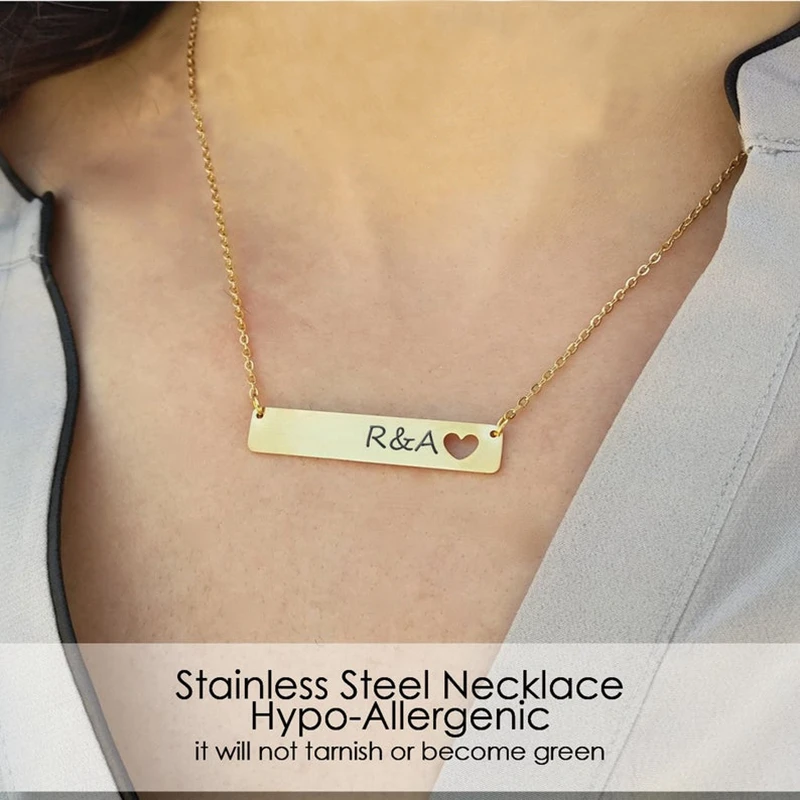 Индивидуальные личности выгравированы координаты имя Дата нержавеющая сталь цепь сердце отверстие бар ожерелье кулон подарки женские ювелирные изделия