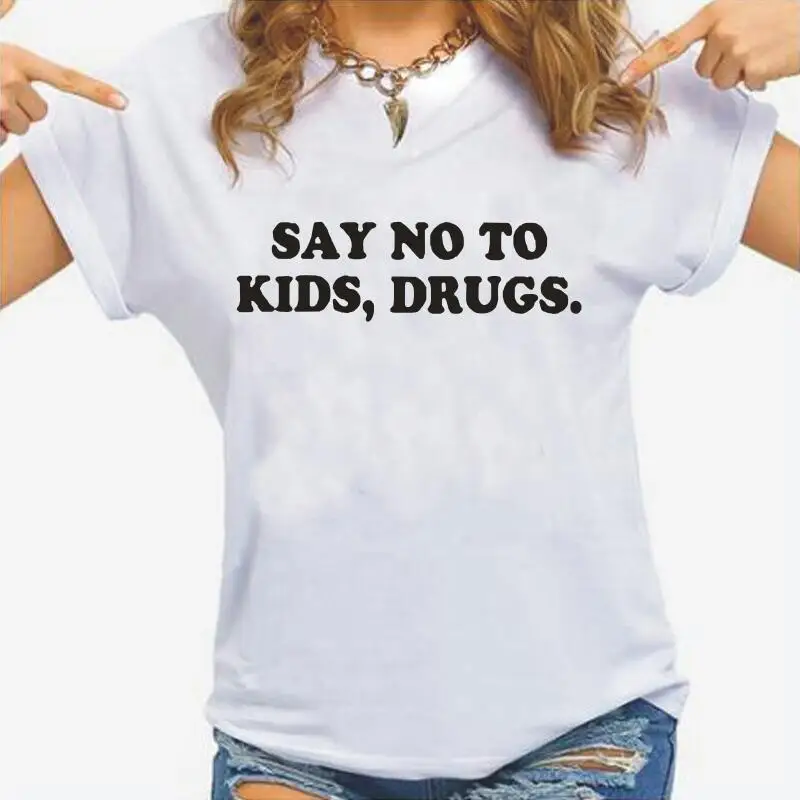 Летняя футболка с короткими рукавами для женщин топы сказать нет, чтобы дети препараты с буквенным принтом Футболка Femme забавные размера плюс футболка Camisas Mujer