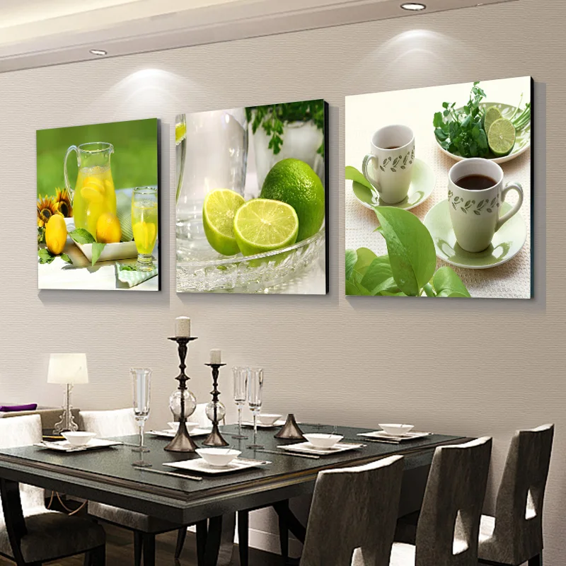 3 Панели, зеленые фрукты, лимон, кухонные плакаты, настенное искусс...