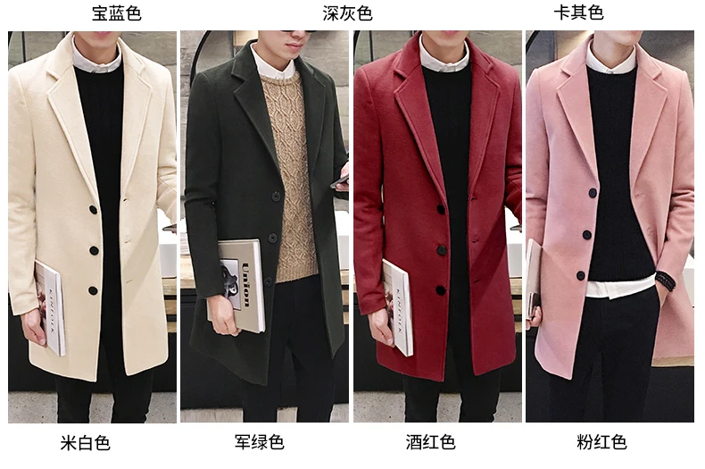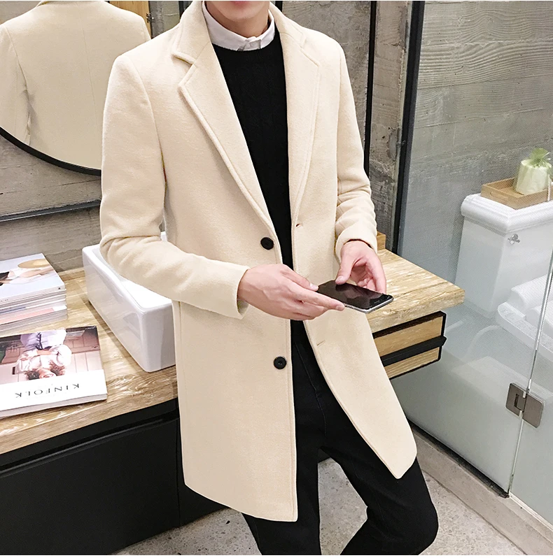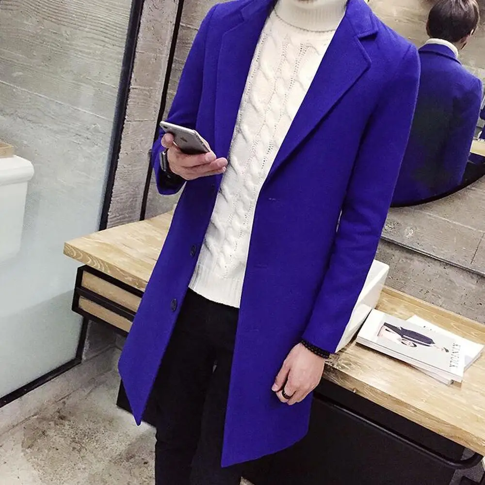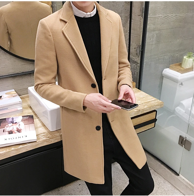 Модная мужская однотонная ветровка, мужское длинное шерстяное пальт...