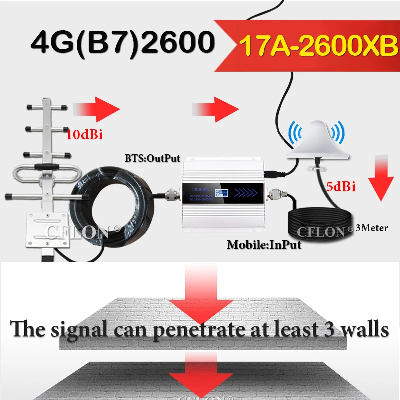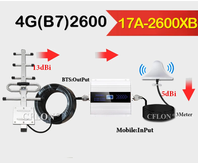 Что входит в комплект ----16L-2600XB = Band7 2600 + потолочная антенна с 3 м кабель + 10dBi Yagi антенна с 10 м кабель + Питание;Только 2600 усилитель = Band7 2600 МГц 4G повторитель сигнала + источник питания;