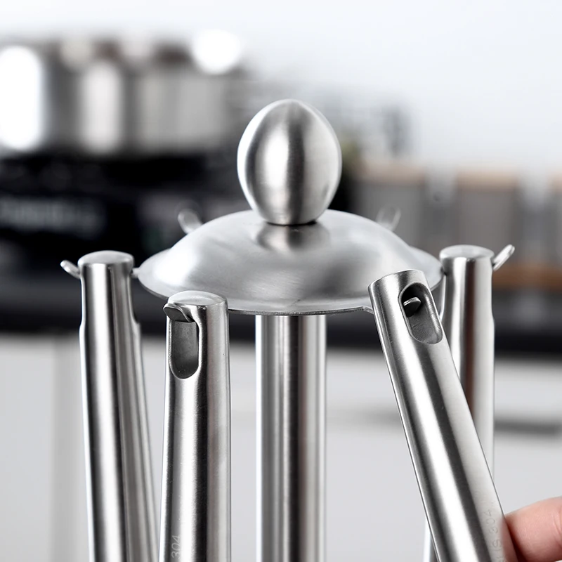Держатель для кухонной утвари из нержавеющей стали Стойка Органайзер 360 градусов вращающаяся карусель с 6 крючками