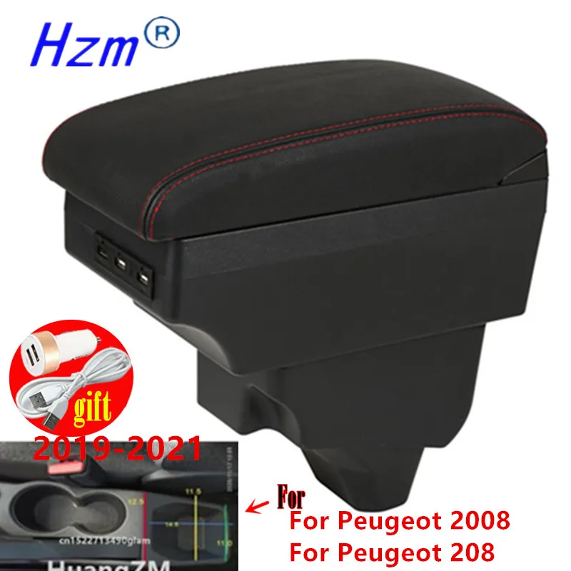 Для Peugeot 208 подлокотник для Peugeot 2008 автомобильный подлокотник 2019 2020 2021 модифицированные детали интерьера ящик хранения аксессуаров USB светодиодный
