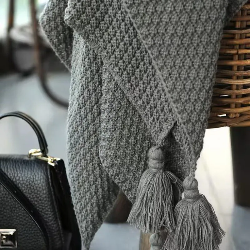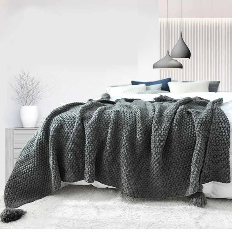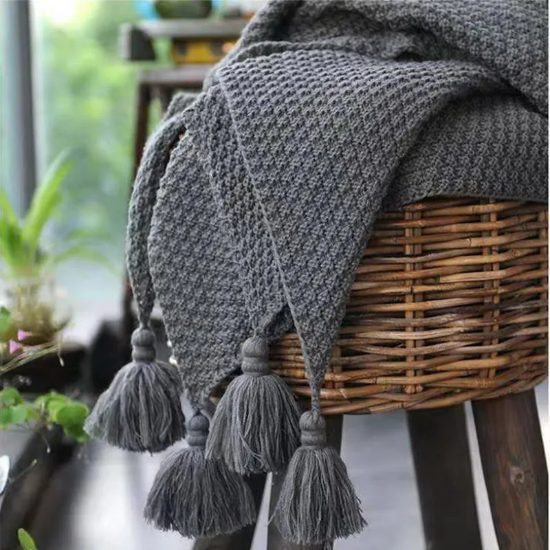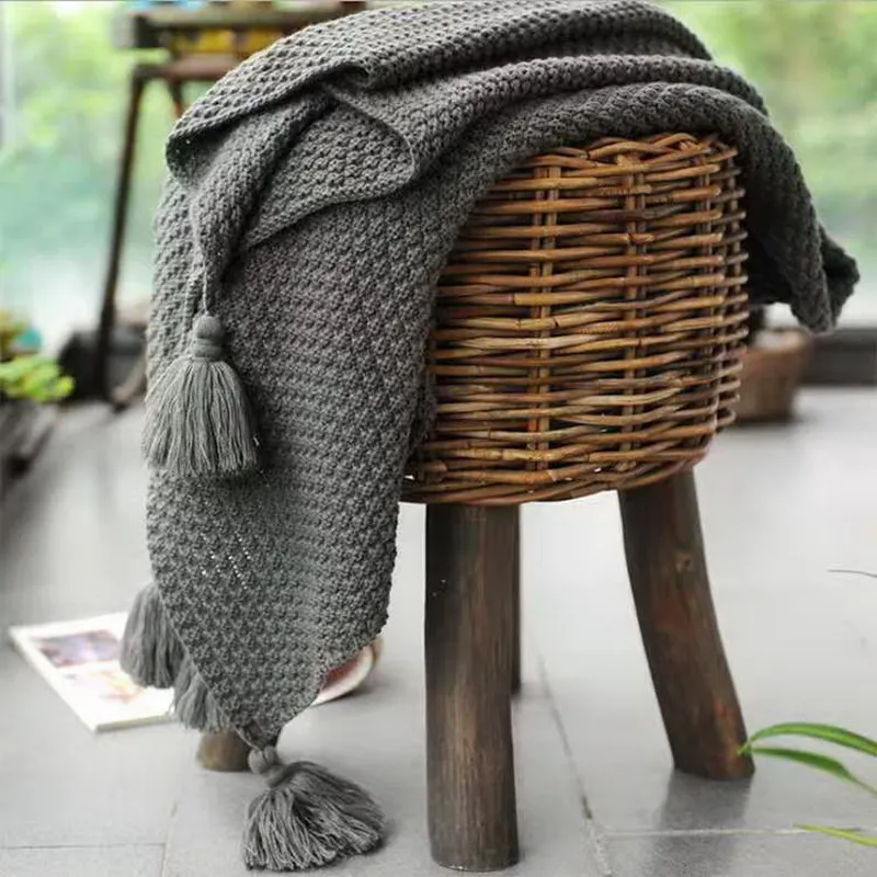 Полидисперсным прямоугольник Nordic Серые вязаные тканые трикотажное покрывало-плед для диван в богемном стиле кровать Декор крышки с кисточкой