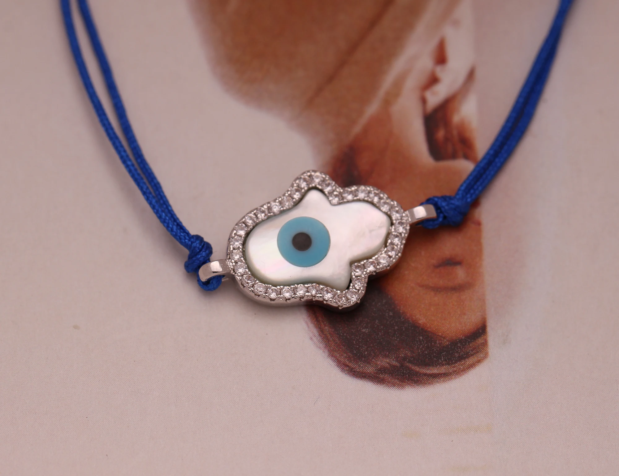 Белый и синий AAA высокое качество кубического циркония камни Медь Хамса браслет с подвесками на руку для предотвращения причинения вреда защиты удачи jewlryбыл подарок