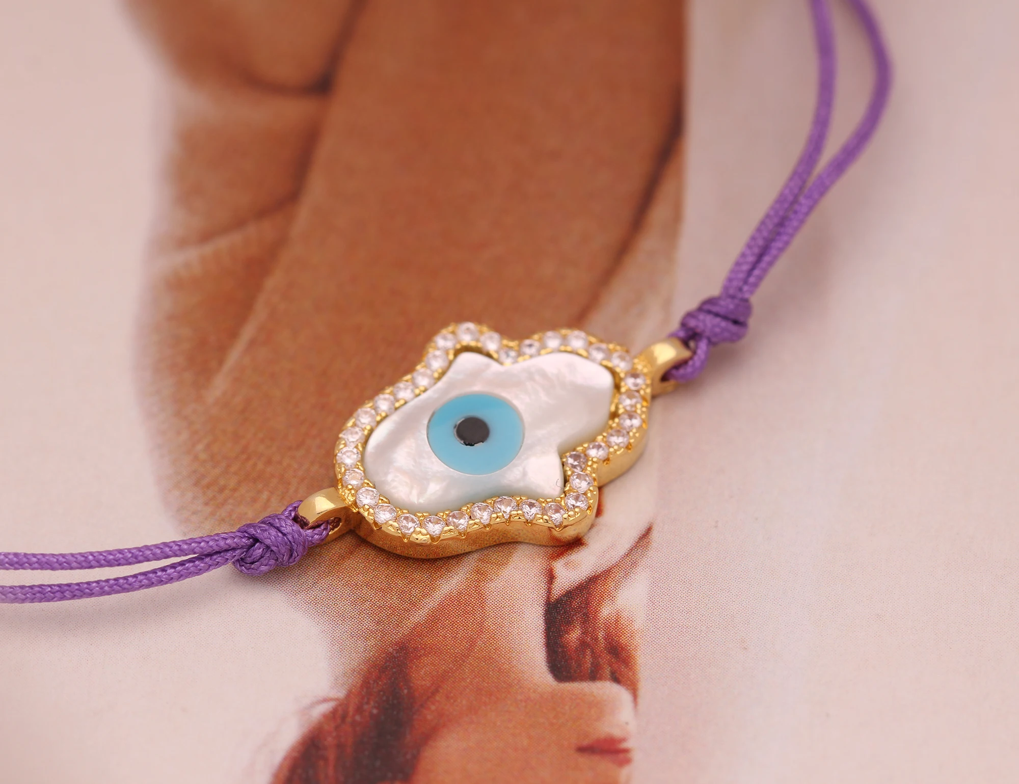 Очаровательный браслет с синим медным глазом красный цепочка Каббал...