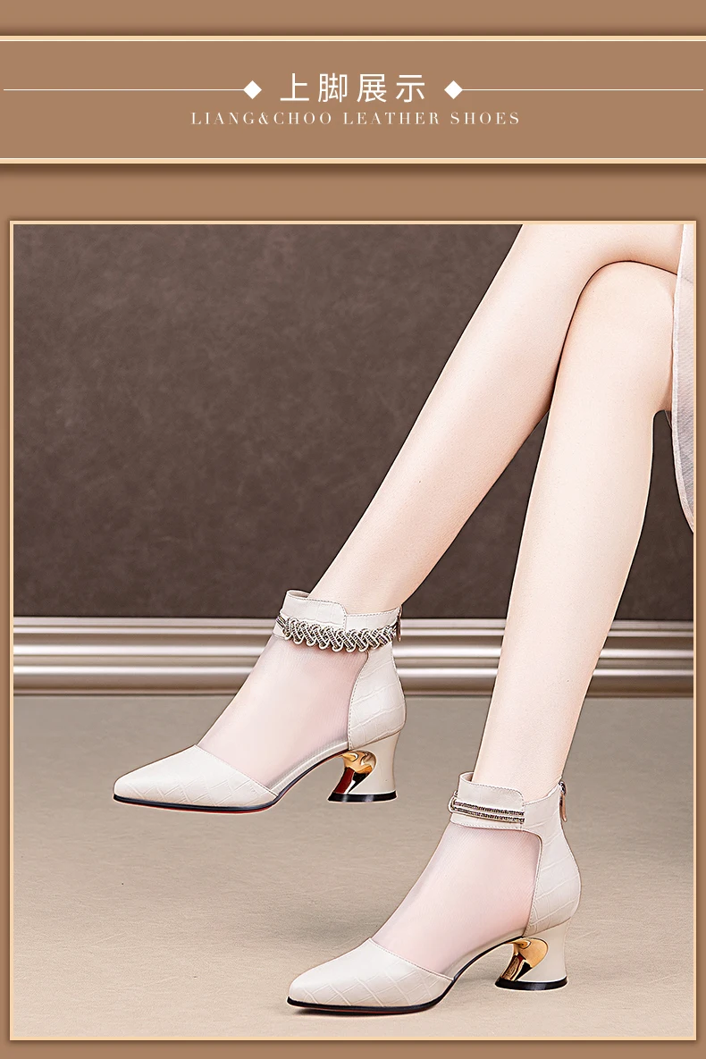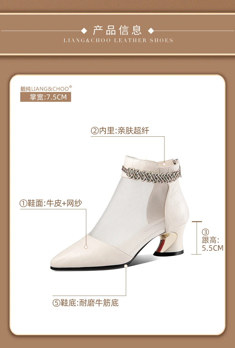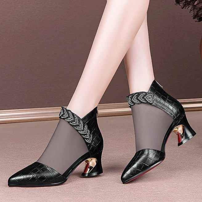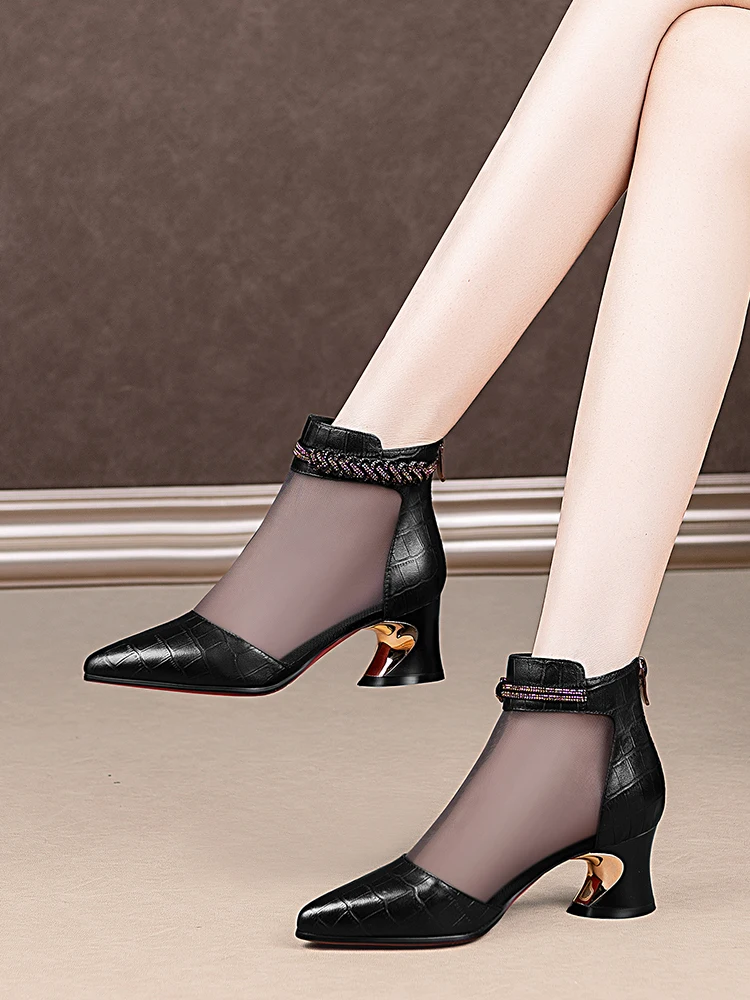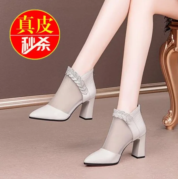 Женские сетчатые ботинки на молнии, дышащие однотонные ботинки на высоком каблуке, с вырезами, модные Универсальные полусапожки, Новинка лета 2021