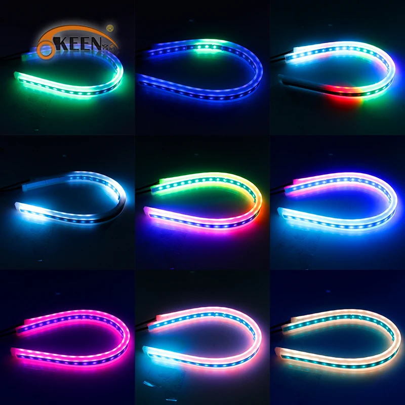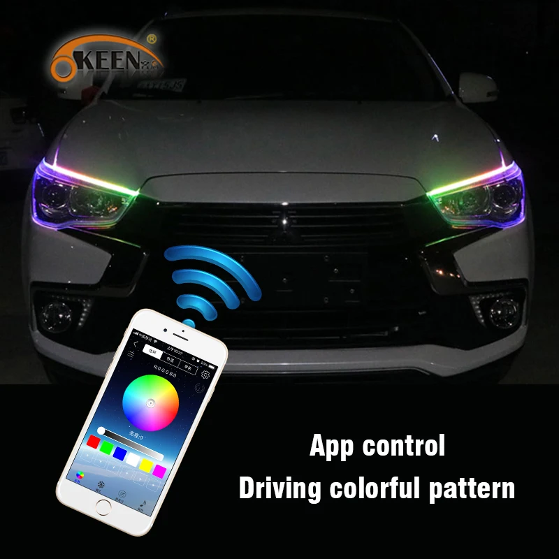 OKEEN 2шт Автомобильный последовательный струящийся RGB дневный ходовой светильник DRL приложение многоцветный светодиодный светильник полоса указатель поворота светильник s для головной светильник