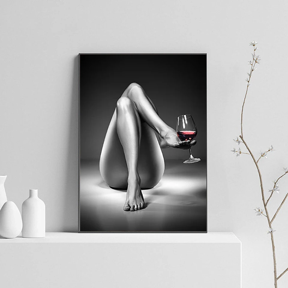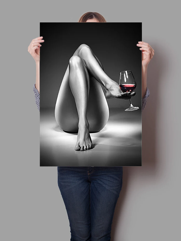 Плакат HD печать голой женщины холст Винные бокалы картина черно-белая сексуальная девушка нордическая Современная Настенная картина гостиная домашний декор