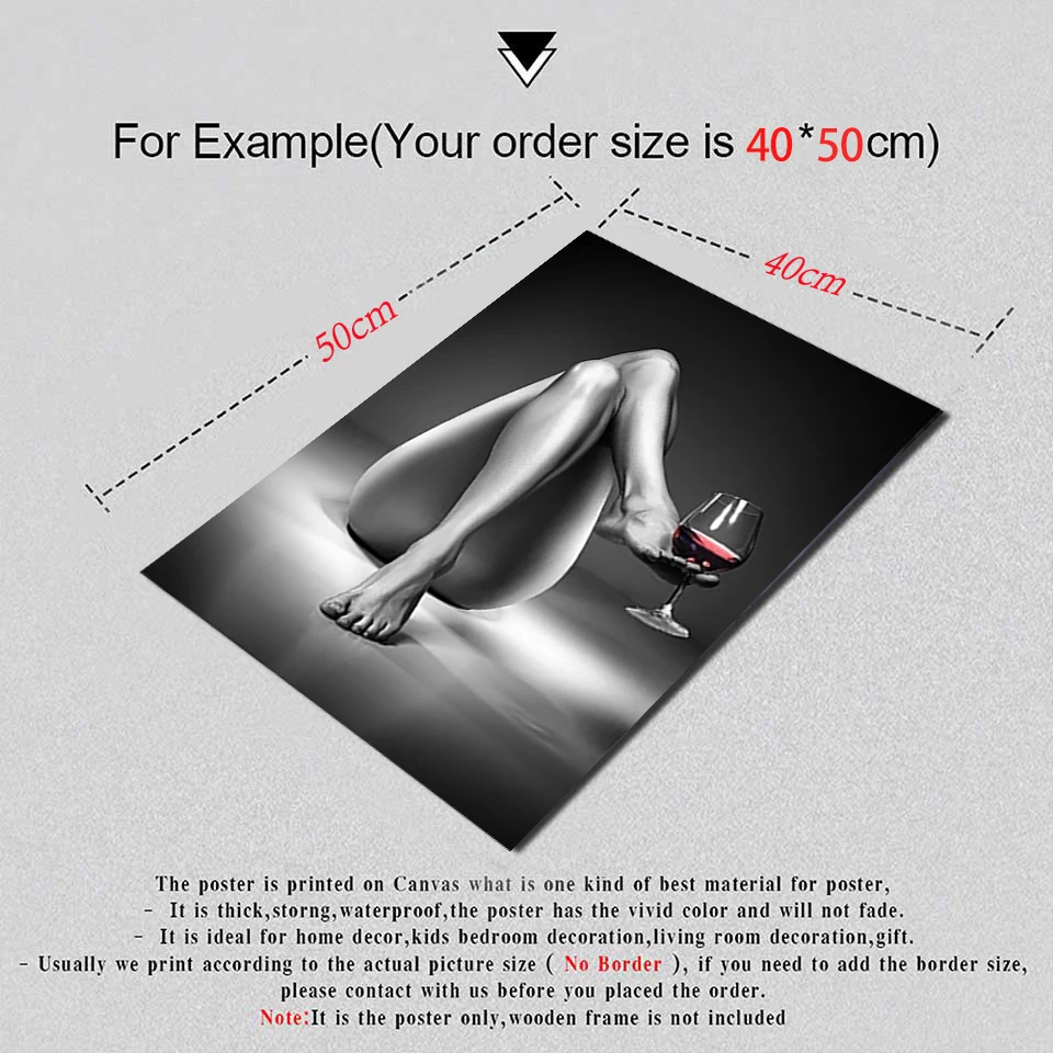 Обнаженная женщина винный бокал Холст Картина черная белая сексуаль...