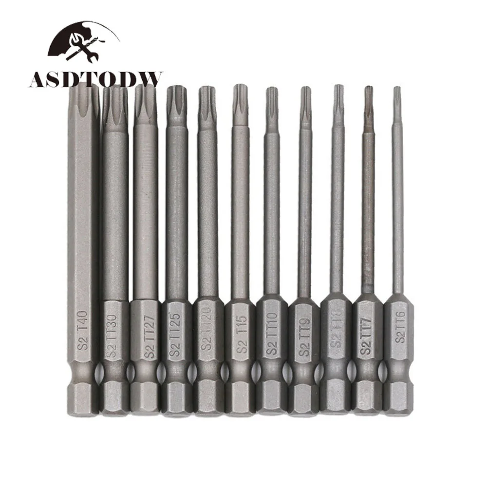 Отвертка бит 11 шт. Hakkin Сталь 100 мм T6-T40 длинные магнитной Звезда Torx Безопасности насадки для отвертки набор 14 шестигранным хвостовиком