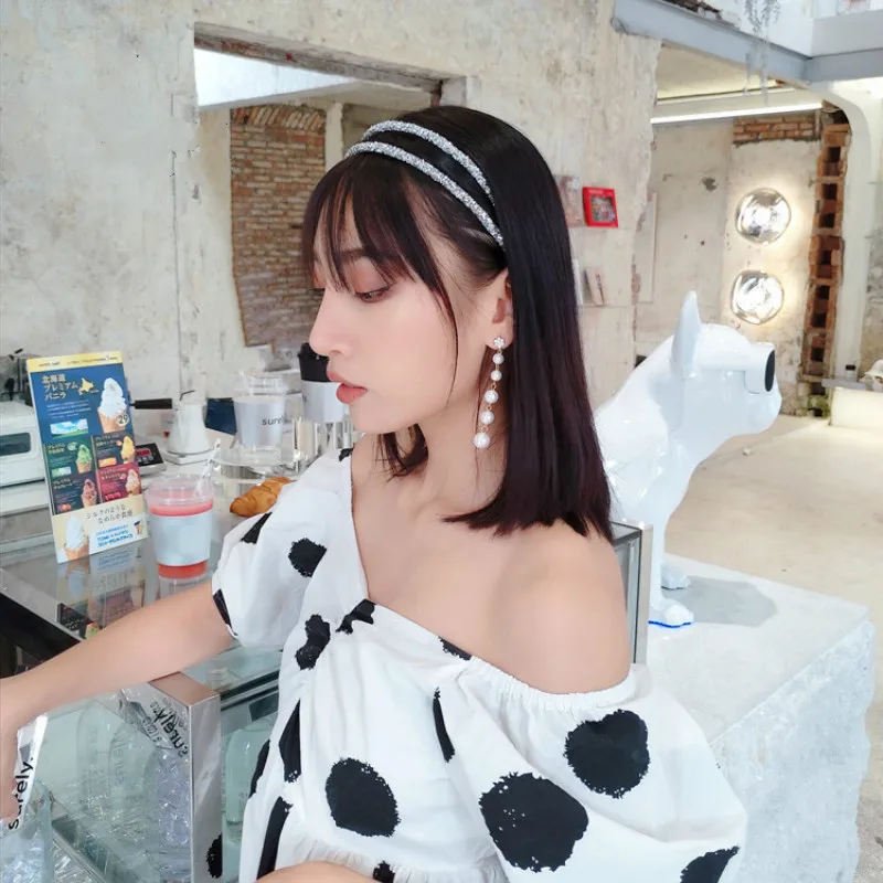 Ободок для волос Женский, тонкий однотонный обруч Стразы с блесткам...