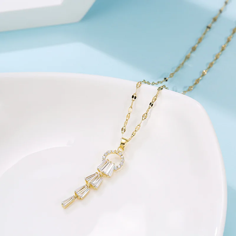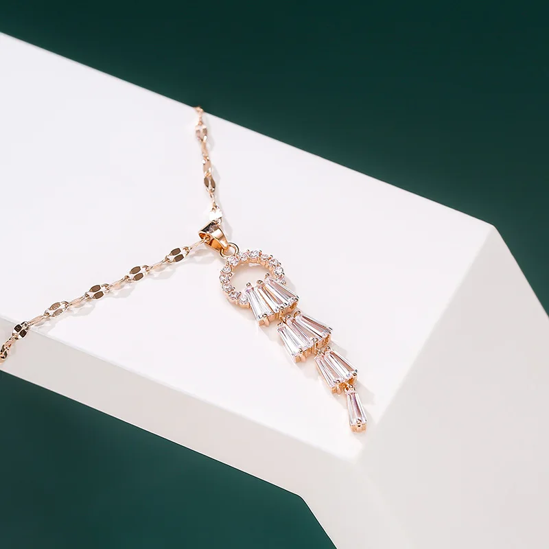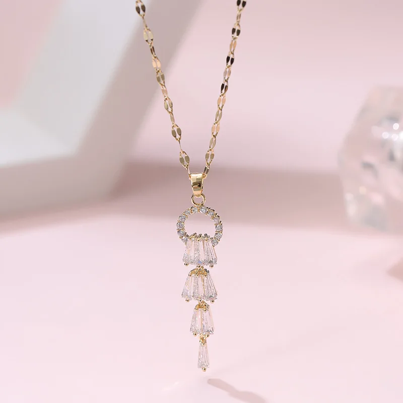 Ожерелье из нержавеющей стали светильник циркониевой цепочкой, цепочка с кисточкой из пшеницы, легкое роскошное ожерелье цвета розового золота в Королевском Стиле, не выцветает