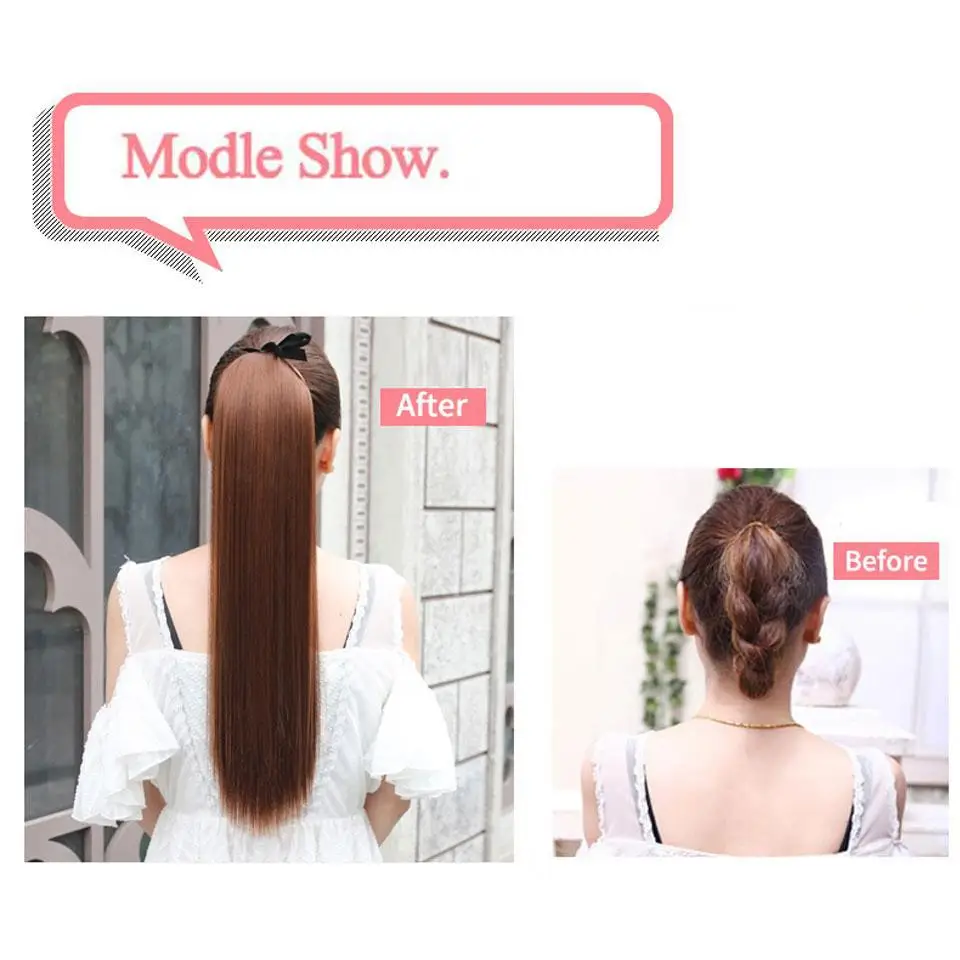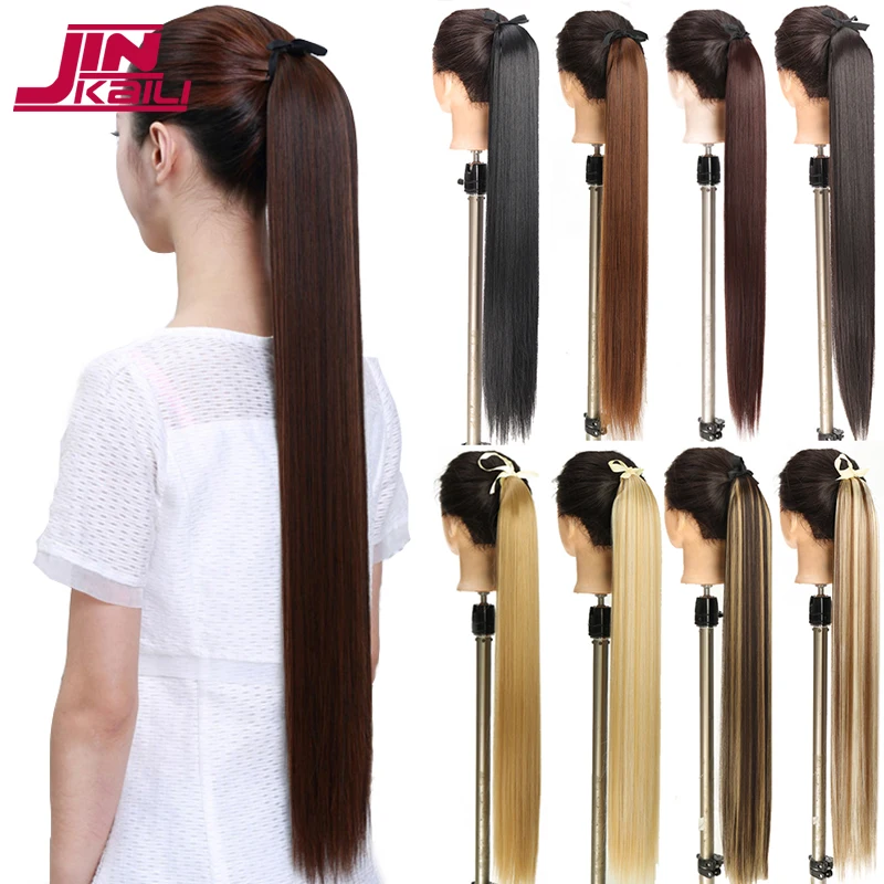 JINKAILI Синтетические длинные прямые накладные волосы конский хвост термостойкие волосы 32 дюйма на клипсе конский хвост для женщин
