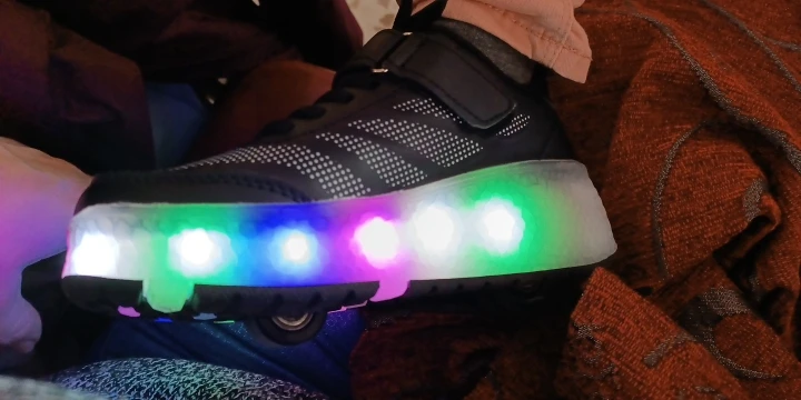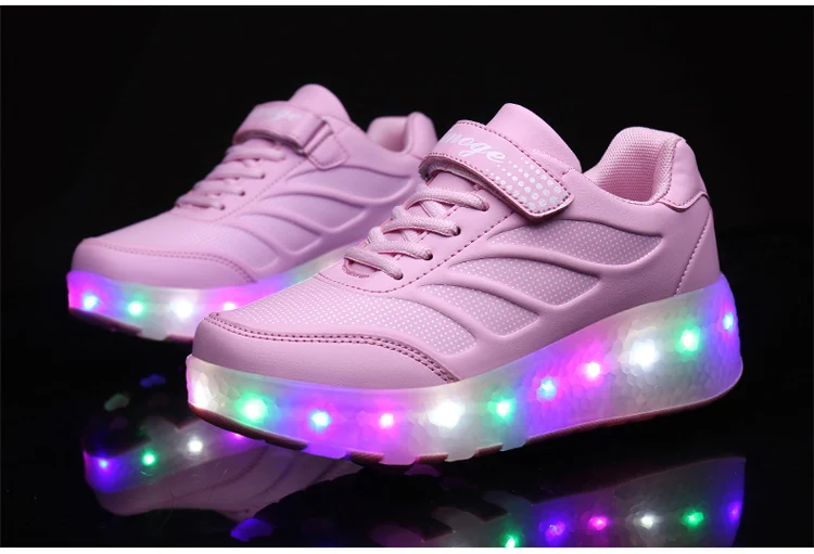 Детские светящиеся кроссовки, зарядка через USB, двухколесные, легкая обувь для роликовых коньков, обувь для мальчиков и девочек, черные, 28-43