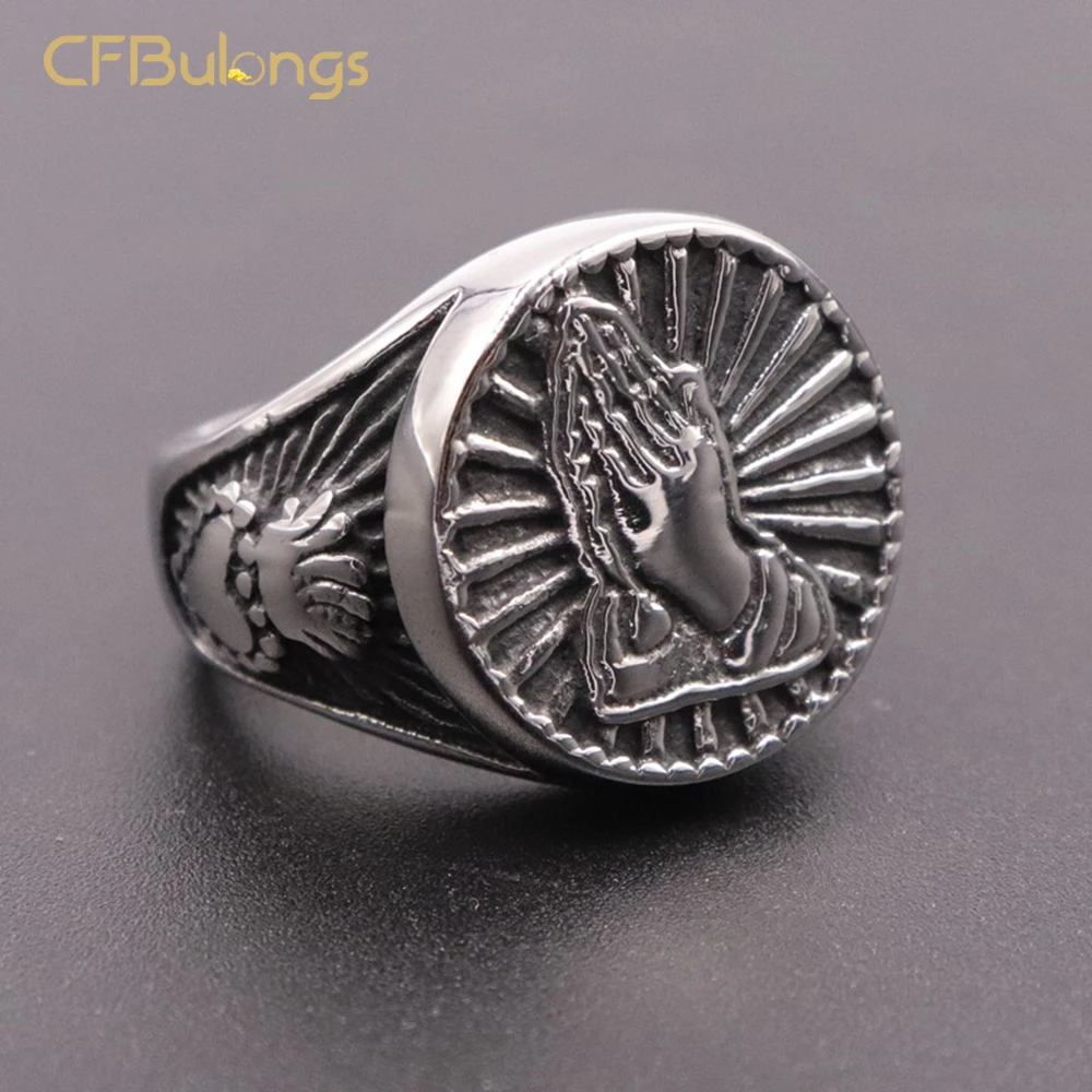 CFBulongs винтажное мужское кольцо с изображением девы Марии, золотого и серебряного цвета, молитвенные руки, модные ювелирные изделия на удачу, обручальное кольцо