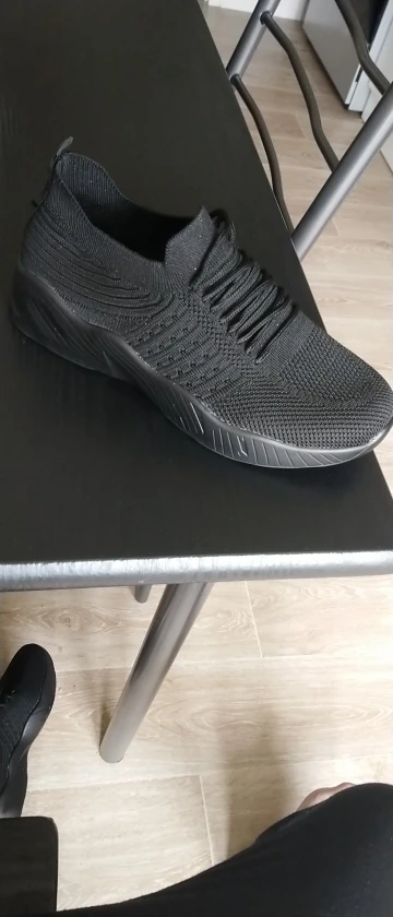 Цвет черный выглядит как на картинке, но очень дешево, вы можете увидеть полоски клея вокруг всей обуви, и подошва обуви очень плохо на ощупь и дешево, как будто она сделана из картона