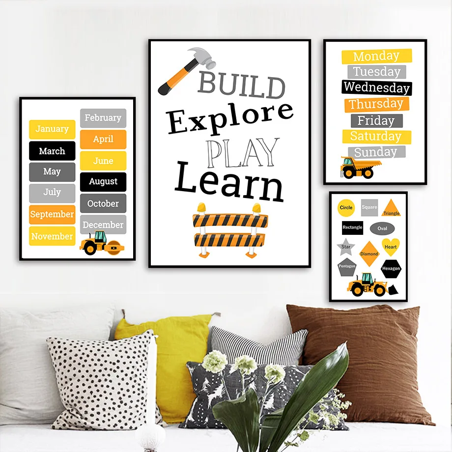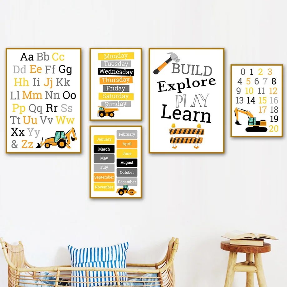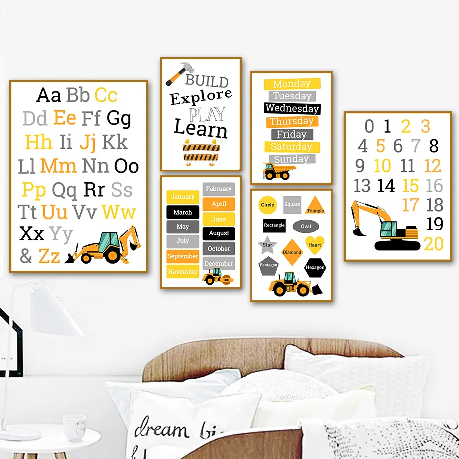 Планет космическая ракета цифры буквы детская стена искусство холст...