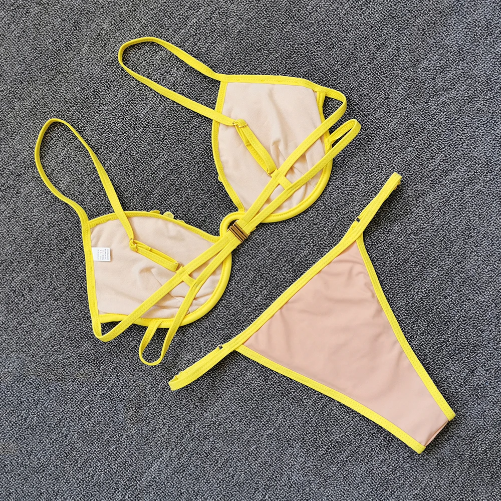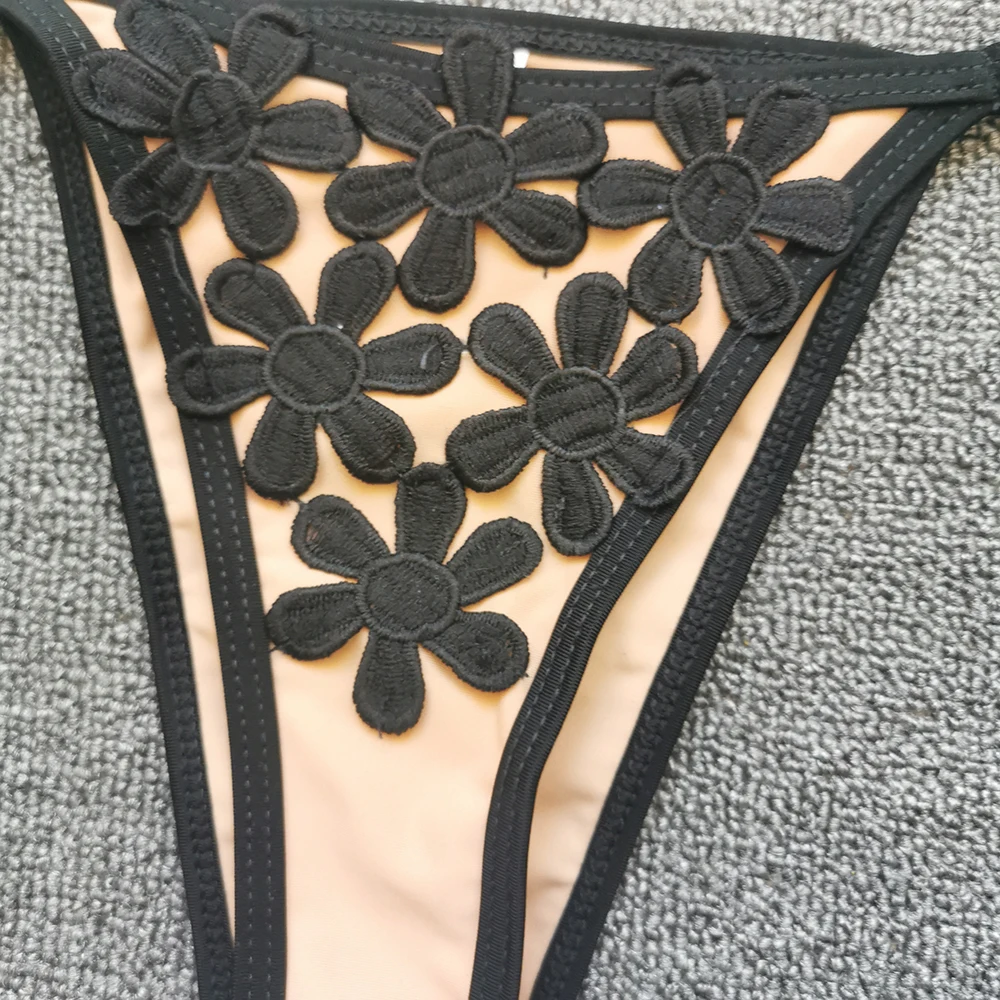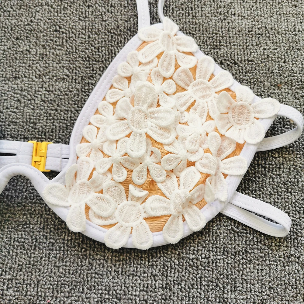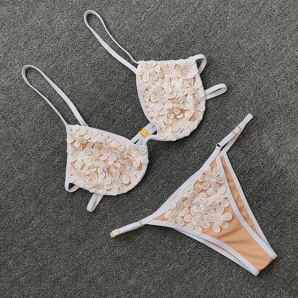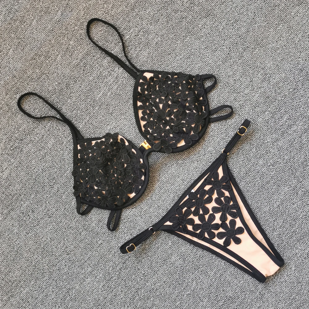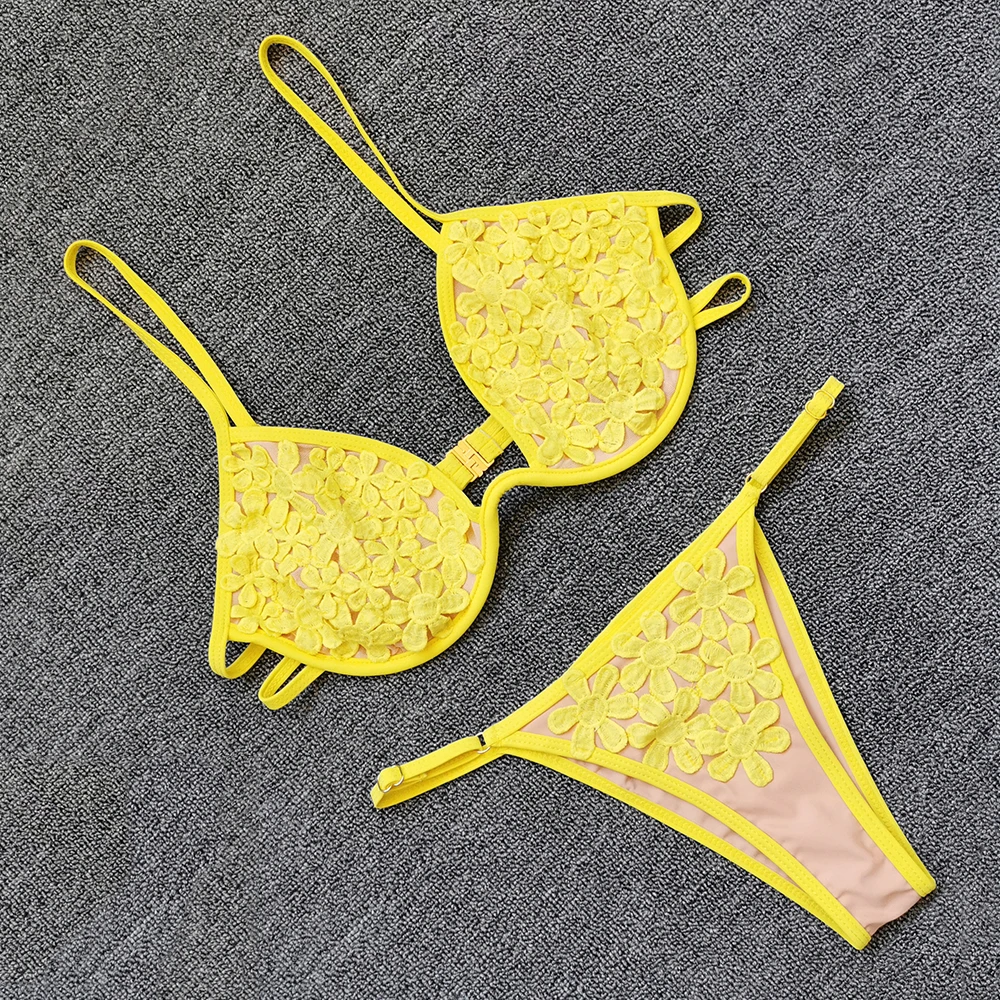 Бикини женское кружевное однотонное с пуш-ап и вырезами