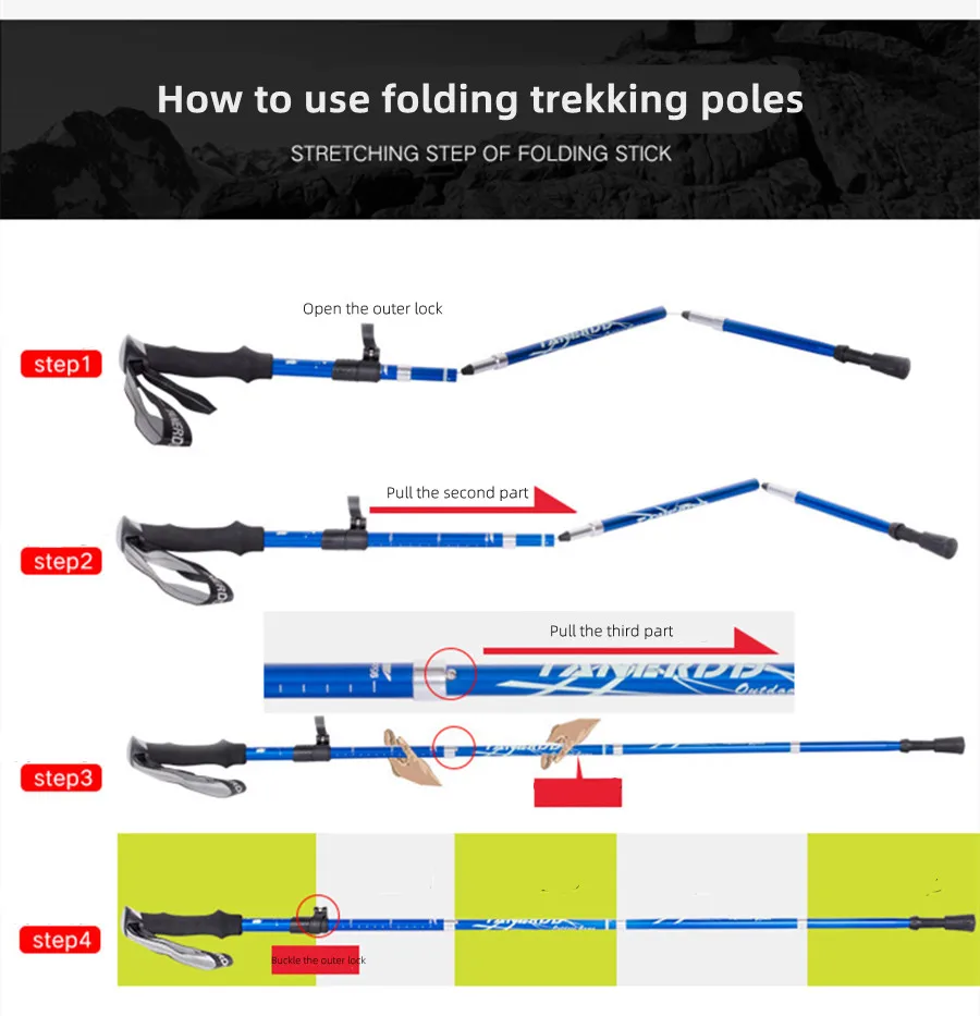Телескопические трекинговые палки для мужчин и женщин, палки для походов на открытом воздухе, складные лыжные палки, для кемпинга, скалолазания, для мужчин