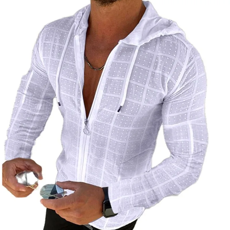 Мужская сетчатая рубашка с капюшоном, мужской кардиган на молнии, П...