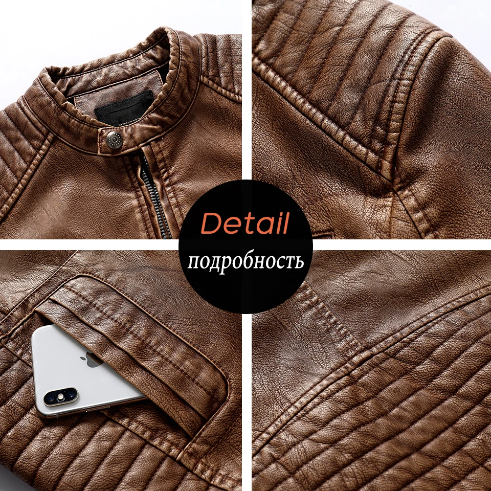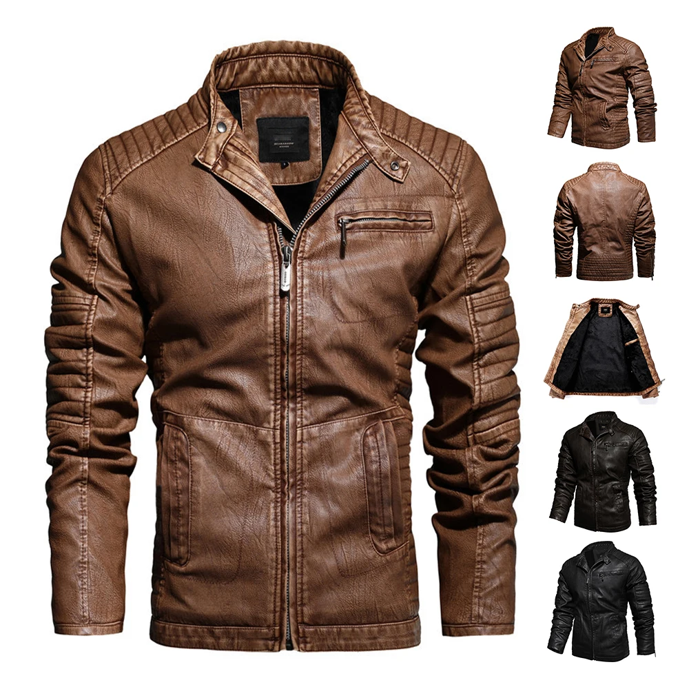 Мужские Винтажные куртки на молнии, Куртки из искусственной кожи в ...