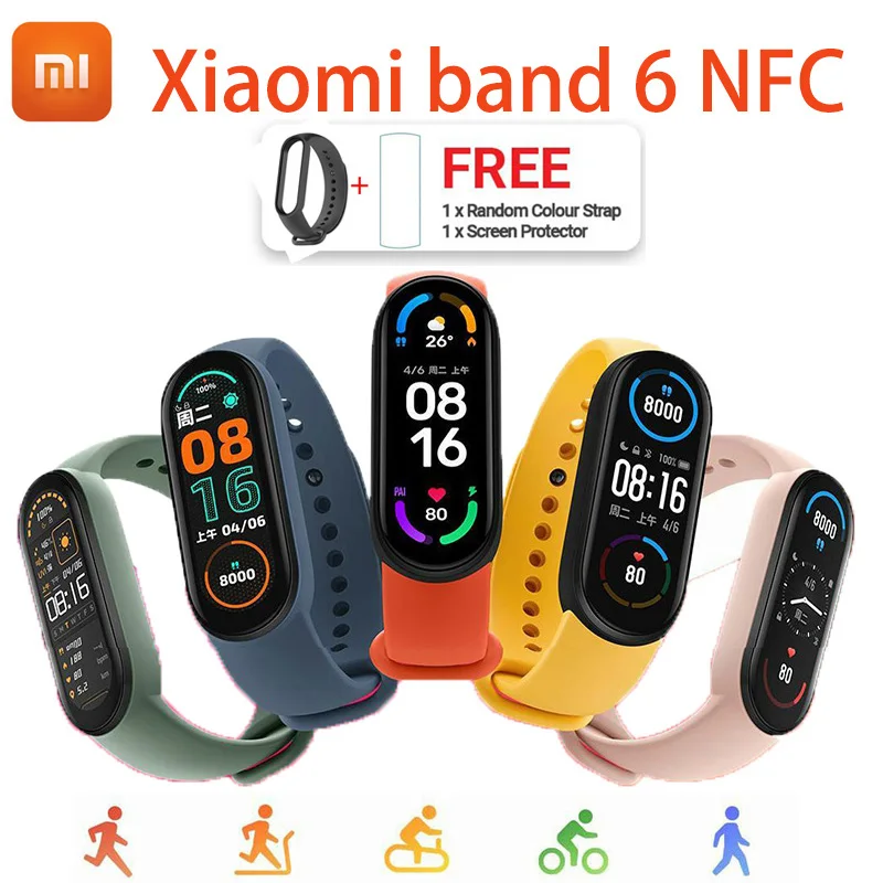 Водонепроницаемый смарт-браслет Xiaomi Mi Band 6, фитнес-трекер с AMOLED экраном, 5 цветов, Bluetooth