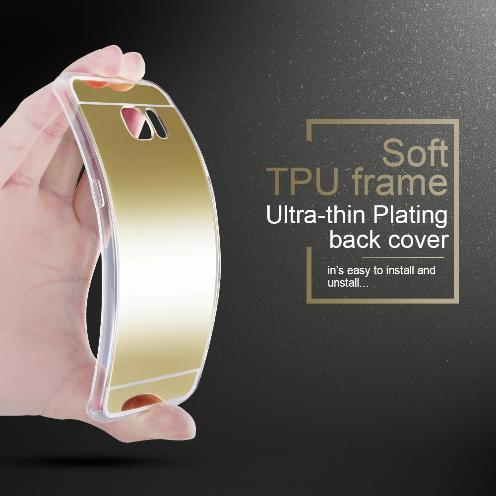 Особенности: зеркало для макияжа + Ультратонкий чехол из ТПУ + блестящее золотое покрытиеФункция: Противоскользящий + грязеотталкивающий + ударопрочный + прочный + устойчивый к царапинам + грязь и удары.Материал: высококачественный мягкий ТПУ силикон