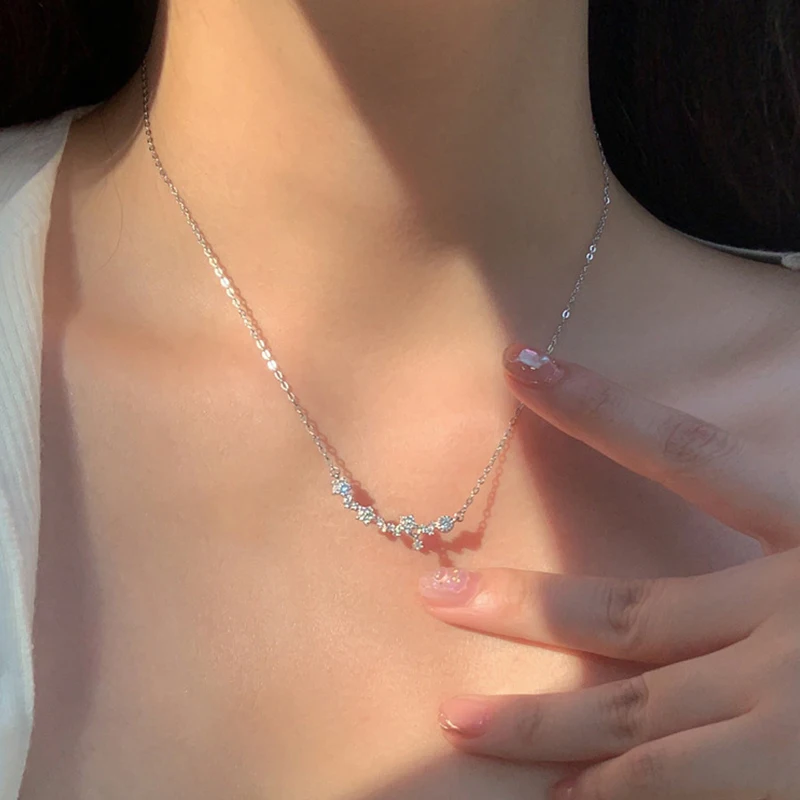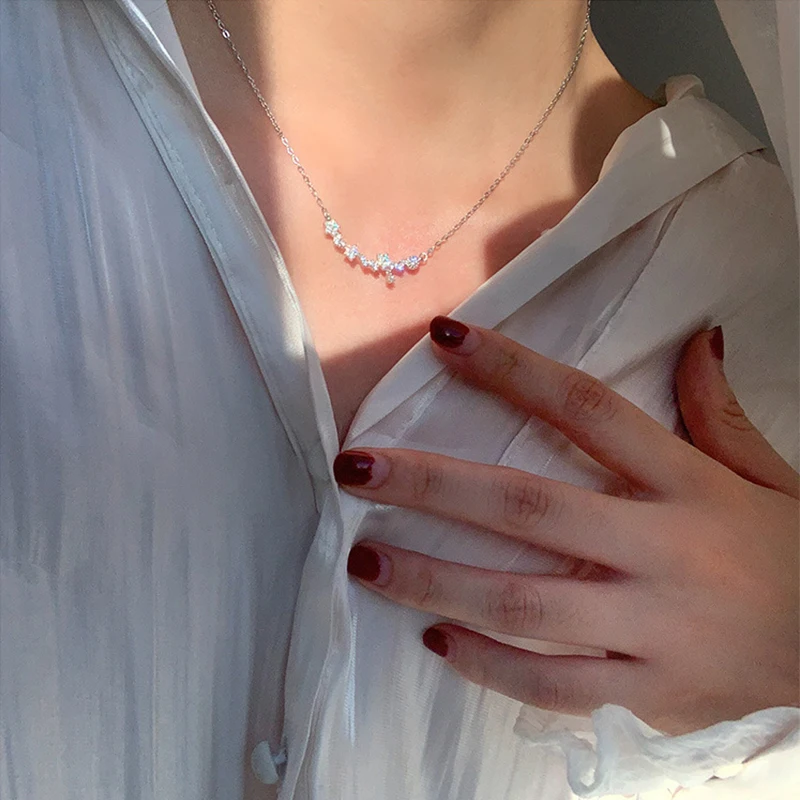 Ожерелье со сверкающими бриллиантами и смайликами из стерлингового серебра 925 пробы, изысканная цепочка до ключиц, подарок на день рождения, женское Ювелирное Украшение