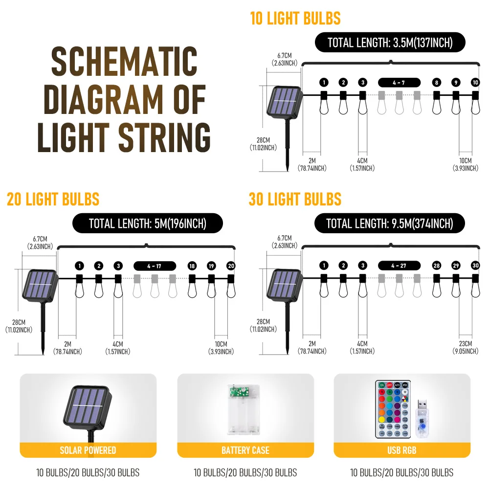 Наши коммерческие светильники являются идеальным украшением для балкона, террасы, сада, бистро, беседки, палатки, барбекю, городской крыши, рынка, кафе, зонта, ужина, свадьбы, дня рождения, вечерние и т. Д. Для замены ламп.