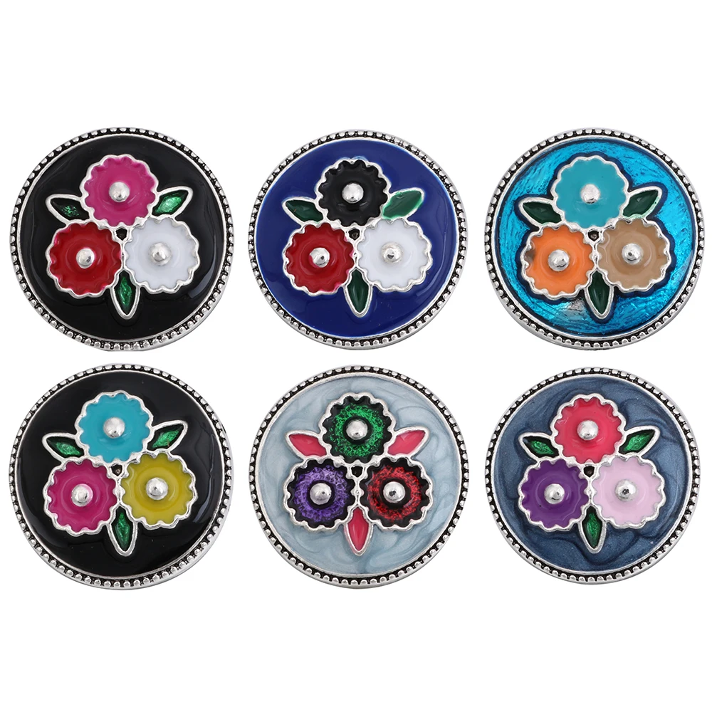 5 шт.лот винтажные кнопки, ювелирные металлические пуговицы 18 мм, пуговицы с рисунком цветов маслом для 20 мм 18 мм браслетов-обручей