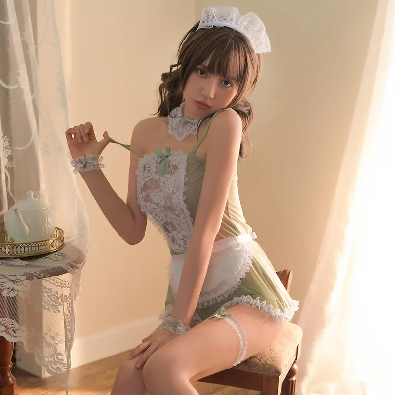 Костюм горничной для косплея, сексуальное нижнее белье, Сексуальная японская кружевная прозрачная Униформа горничной, соблазнительный костюм (EBMSALV)