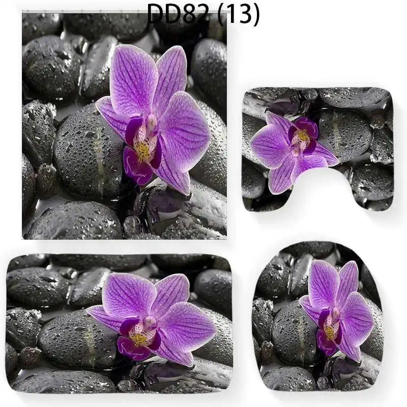 Пружинные водонепроницаемые тканевые занавески для душа в комплекте с изображением цветка лотоса, Противоскользящие коврики, крышка для унитаза, коврик для ванной