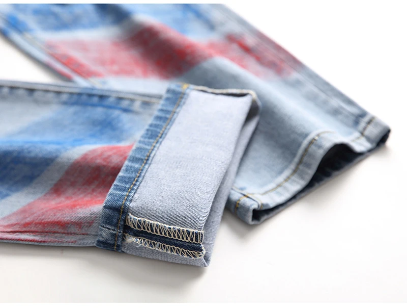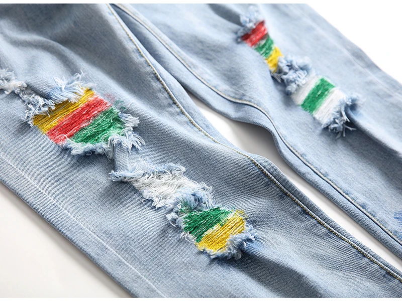 Мужские рваные джинсы трендовые цветные окрашенные рваные потертые джинсовые брюки тонкие Стрейчевые брюки