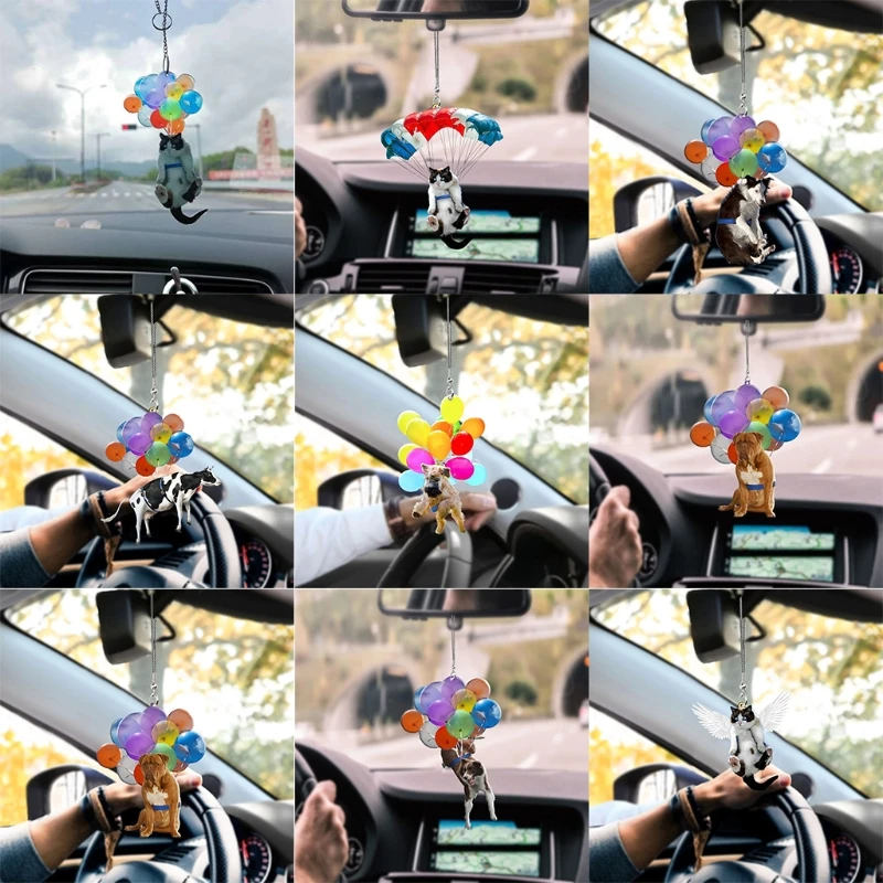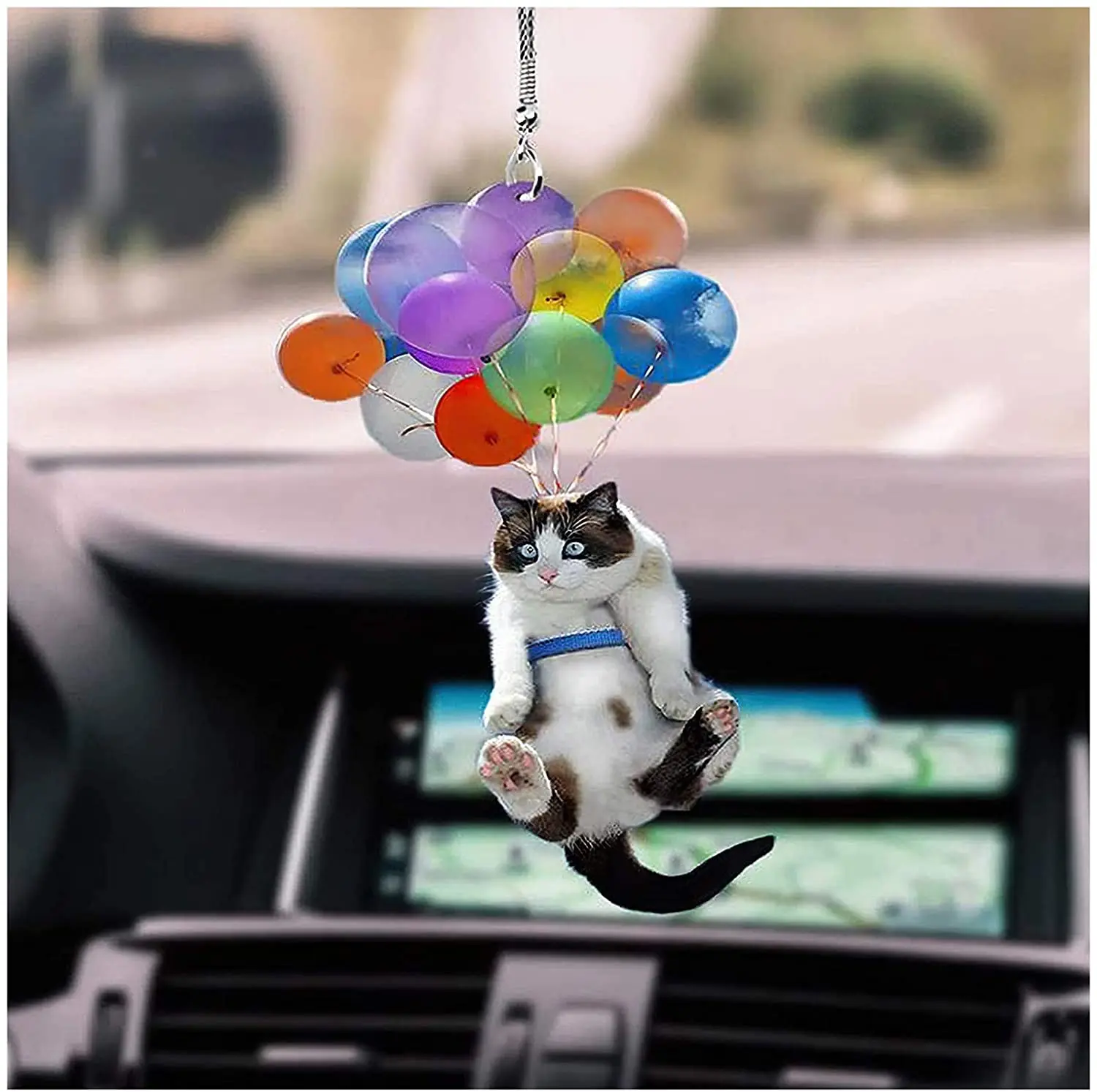 Подвесное украшение для автомобиля, с изображением кошки, с цветным воздушным шаром, симпатичное украшение для автомобиля, креативный милый кот, брелок, подвеска для машины