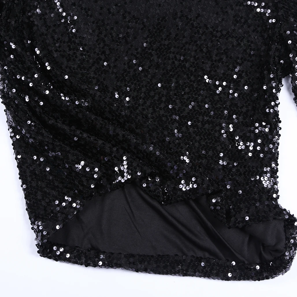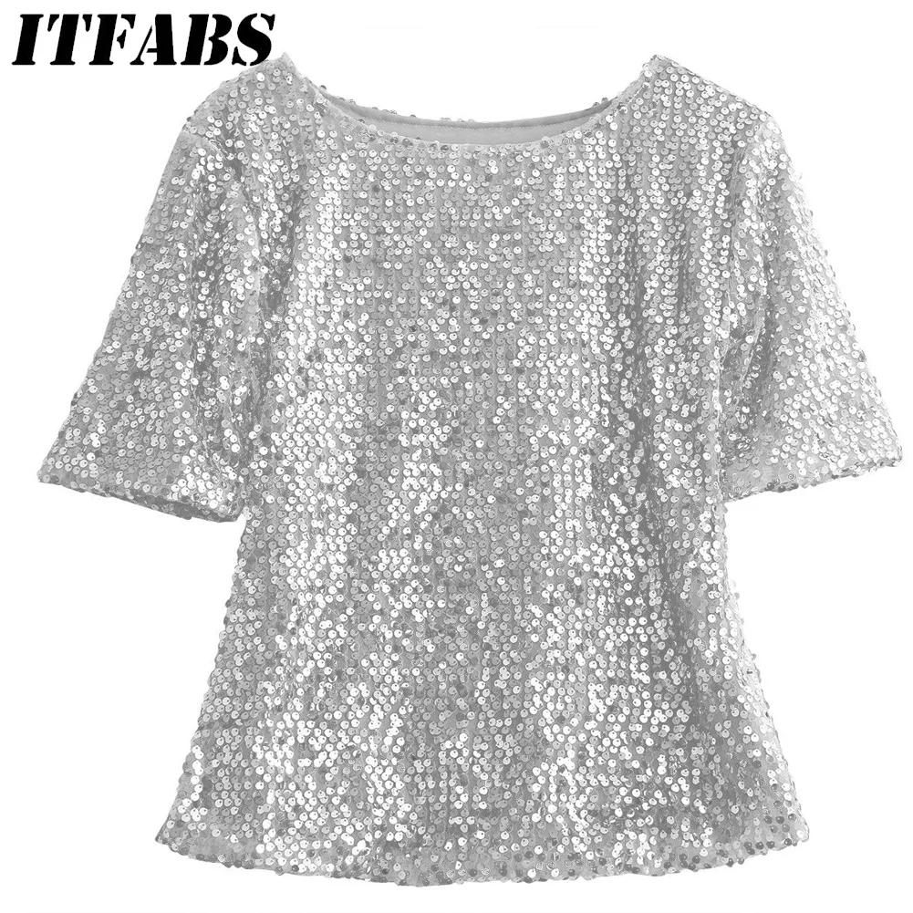 Блестящий топ с рукавом 3/4, блестящий топ со шлейфом и блестками, Новые вечерние женские футболки с блестками