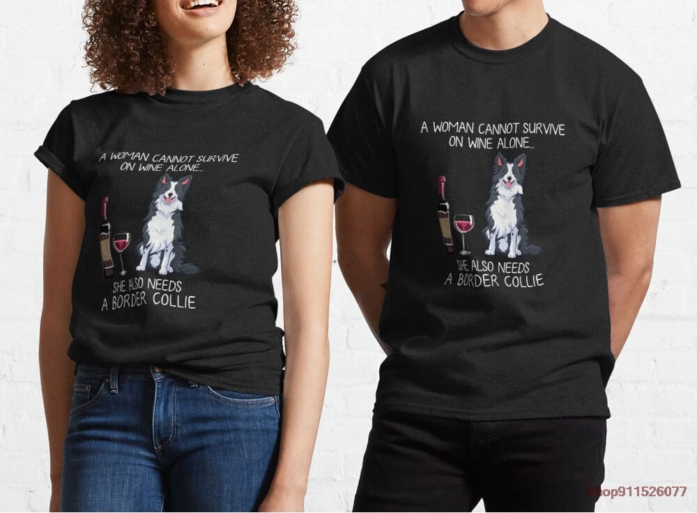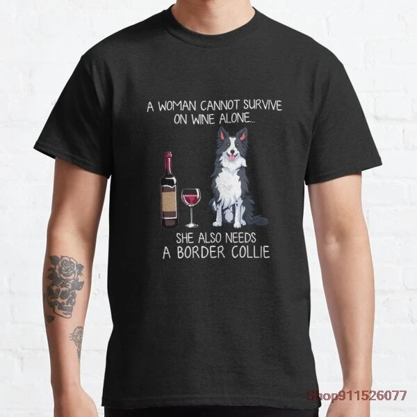 Мужская хлопковая футболка Border Collie and wine, летняя повседневная свободная футболка с круглым вырезом, модная мужская футболка